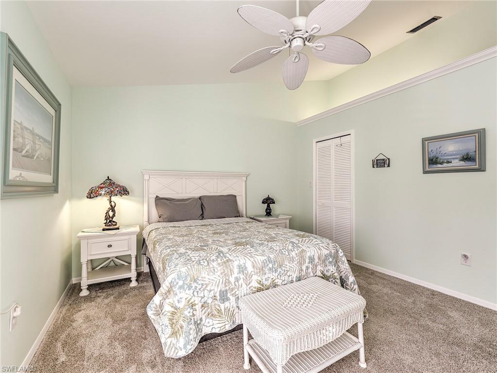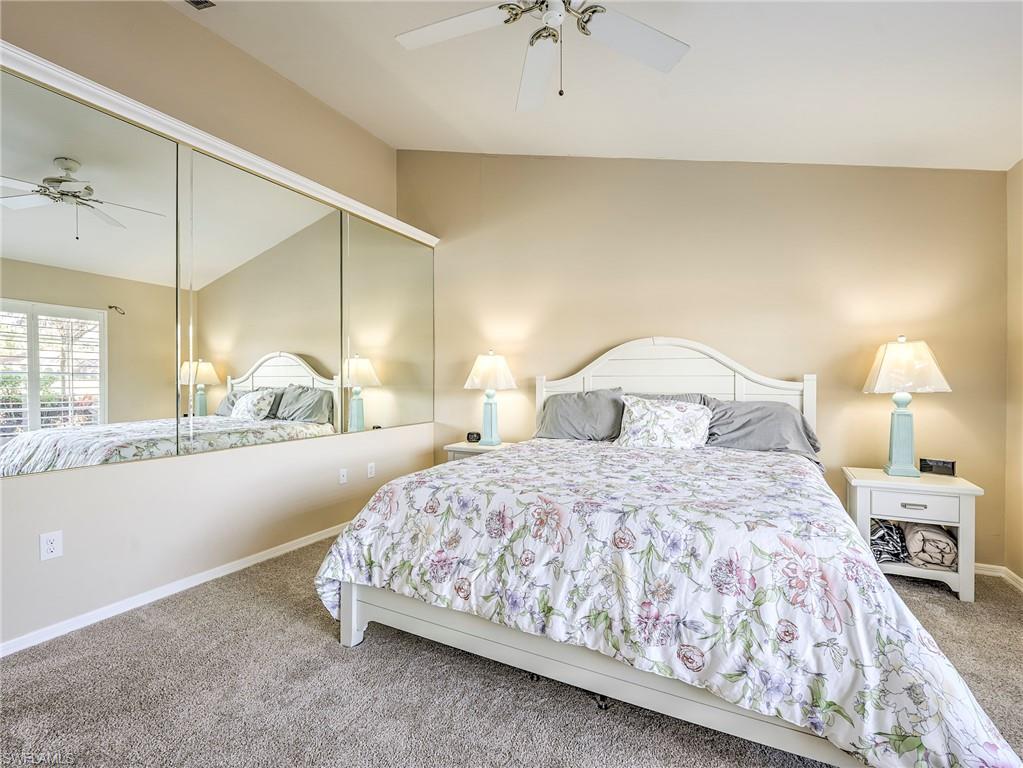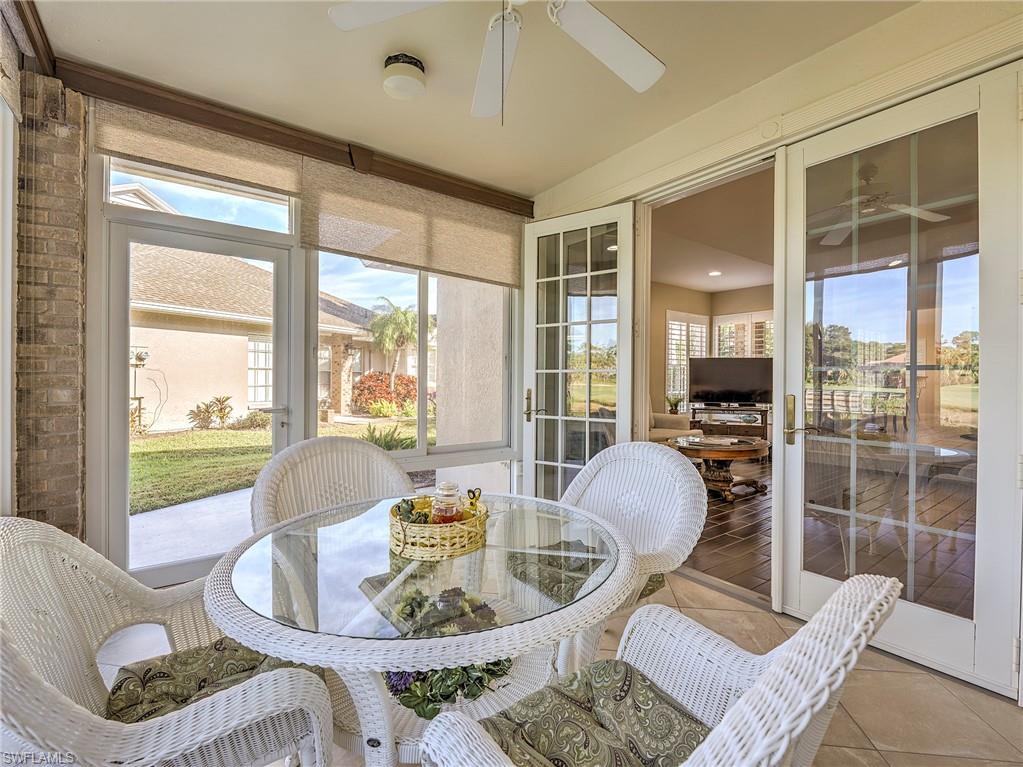 Experience the quintessential Florida lifestyle in this beautifully maintained villa, perfectly positioned to capture breathtaking water and golf course views. This home features an open-concept living area with vaulted ceilings and living space that flows seamlessly into an enclosed glass lanai—the perfect spot for morning coffee or sunset relaxation. The well-appointed kitchen boasts crisp white cabinetry and a charming bayed eat-in area. Designed for privacy, the split-bedroom floor plan ensures comfort for you and your guests. The primary suite serves as a true retreat, featuring a walk-in closet and a recently updated bathroom with dual sinks and an oversized shower. Your guests will love the secondary bedroom, which includes its own private courtyard and walk-in closet. Practicality meets luxury with a large 2-car garage and a neighborhood pool and spa conveniently located just across the street. Located within The Vines, a premier gated community, you will enjoy world-class amenities including a newly renovated clubhouse, tennis, pickleball, bocce, and a fitness room. Social membership at Estero Country Club is required, with optional golf memberships available with no waitlist. This move-in-ready gem is selling turnkey and is your chance to enjoy the winter in sunny Southwest Florida!