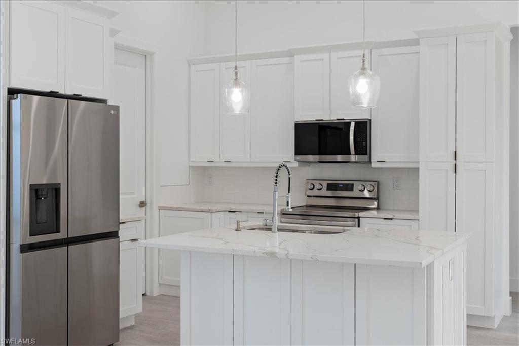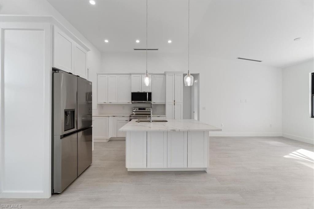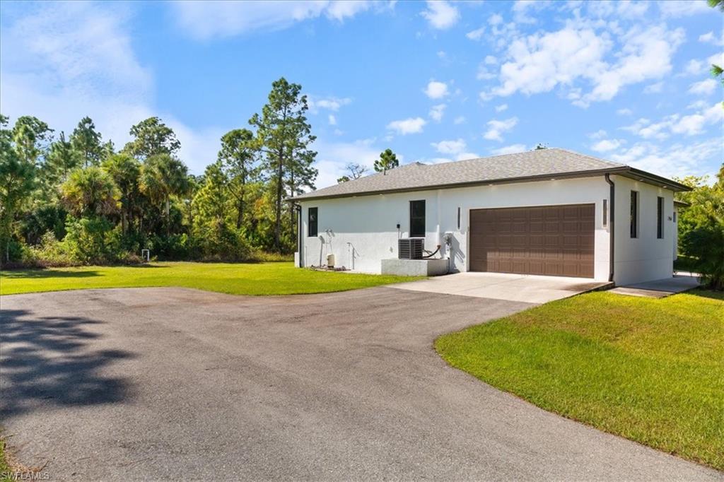 Experience the pinnacle of modern estate living at this newly constructed luxury residence at 1964 16th Ave NE in Naples. Perfectly positioned on 2.5 acres of private land, this architecturally refined home blends exquisite craftsmanship with the tranquility of Golden Gate Estates’ coveted lifestyle. A grand entry welcomes you into a light-filled interior with soaring ceilings, designer finishes, and expansive impact-rated windows framing the natural surroundings. The gourmet chef’s kitchen serves as the centerpiece of the home, showcasing waterfall-edge quartz countertops, custom cabinetry, premium stainless-steel appliances, and an oversized island ideal for both intimate gatherings and elevated entertaining. The sophisticated split floor plan offers a secluded primary suite featuring serene landscape views, a spa-caliber bathroom with dual vanities, a spacious walk-in shower, and a custom-designed dressing closet. Guest accommodations are equally impressive, offering comfort and privacy with beautifully appointed bedrooms and baths. Thoughtfully designed for indoor-outdoor living, the expansive covered lanai provides the perfect backdrop for future poolside retreats, al fresco dining, or simply enjoying the serenity of the estate-sized property. A full paver driveway, impact doors and windows, high-end tile throughout, and a spacious 2-car garage further elevate the home’s refined appeal. Crafted for those who demand elegance, space, and modern luxury, this brand-new Naples residence delivers an unparalleled blend of sophistication and privacy, just minutes from world-class beaches, dining, and shopping.