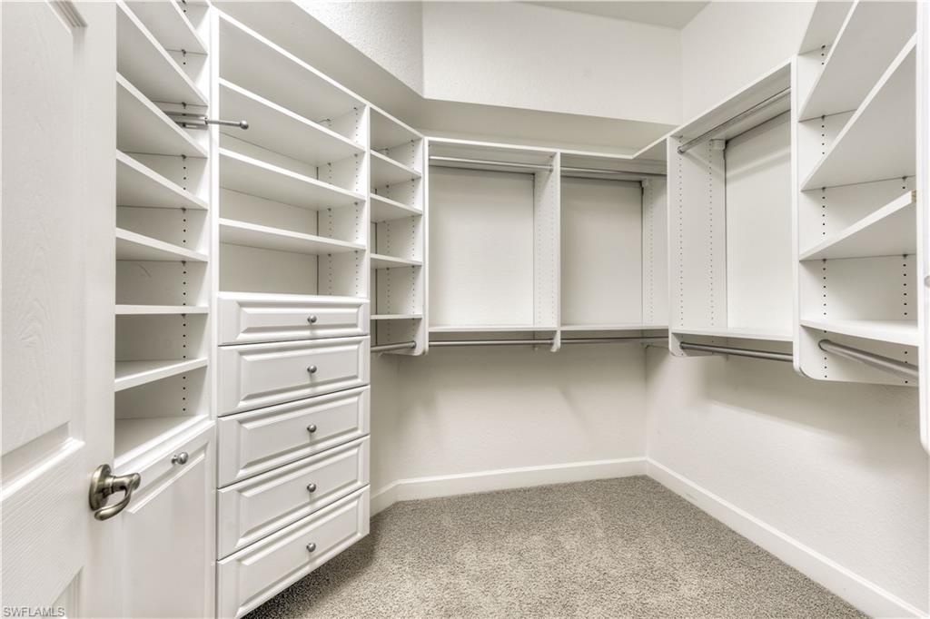 This Oversized Northern Exposure Upper Unit Four-Plex Coach Home offers 3 Ensuite Bedrooms Plus Den. The Split Bedroom Great Room Floor Plan Lives Like a House. With 2,748 SqFt under air plus Impact Glass Sliders on 233 sq ft Lanai offers an endless view... making the condo feel even larger. The oversized 2 car garage with individual doors also has 2 closets for storage. One of the closets is below the closet in unit which was designed for an elevator if you'd like to add one. The large kitchen also has great cabinetry & storage. It is accessible to the great room, morning room & lanai making it the heart of the home. Notice the many recessed lights & 7" Crown Moulding, it is everywhere as are the 4" Wooden Plantation Shutters. 20" tiles laid on the diagonal are in all main living areas & lanai. The Den has 'real' hard wood floors. All upgraded cabinetry hallmark the coordinated effort of this original home owner who chose the interiors with the builder design team. The Great Room can have many configurations for relaxing lifestyle living. The spacious Primary has its own door to lanai with the show stopping view. The lanai offers the sought after panoramic view of trees, lakes, the 5th hole of the North Course & awesome sunsets. Don't miss seeing this wonderful unit with spectacular views. The Commons Club membership offers access to private beach club, health & fitness center & spa, pickleball, social activities, private restaurant, playground and lap pool. Member owned Shadow Wood Country Club has 54 holes of golf, 2 clubhouses, social/dining, tennis and bocce. The new Lifestyle Center of Shadow Wood Country Club is under construction & will include 2 new resort style pools, a children's pool, restaurant & bar, 6 indoor air-conditioned pickleball courts, racquet pro shop, grab and go café, outside beverage & dining service as well as new tennis courts. Great location close to RSW Airport,Coconut Point Mall, Numerous Restaurants, Shopping, Beaches and Health Care.