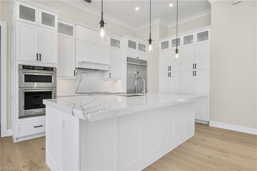 ****Immediate Occupancy**** Custom Built New Construction Home - Just Completed! This brand new single family home is situated on a direct access 80’ X 110’ lot with a brand-new seawall. Main living (a/c) 2,452 sqft, grand total 3,529 sqft and pool deck 763 sqft. Upgraded front elevation with bahama shutters, lush landscaping with irrigation system and paver driveway. This home features four bedrooms, with one designated as the primary suite and the other as en suite for guests. The kitchen is a true centerpiece, featuring top-of-the-line KitchenAid commercial appliances, quartz countertops and an oversized island designed for gathering & entertaining. The primary suite is a true retreat with spa-inspired bath, walk in shower and his & her walk in closets w/ built in closet systems. Great room has 14’ ft. coffered ceiling, custom built entertainment center and 10’ ft. sliding door wall that flows seamlessly to the outdoor living space. The dining room has 10’ ft. corner sliding door wall and the study offers double glass doors and a tray ceiling with crown molding. Other features throughout the home are white oak wood flooring, 12’ ft. ceilings, 8’ ft. solid core doors, crown molding, quartz countertops, recessed lighting and high impact glass windows. Laundry room has upgraded Whirlpool washer & dryer, utility sink, vertical storage and upper & lower cabinets. Outdoor kitchen has a vented gas grill, undermount sink, two drawer refrigerator and access to pool bathroom. Saltwater pool with sun shelf & elevated spa overlooking water views with room for 60’ ft. dock. Two car garage with high ceilings and epoxy finished floor. Located in highly desirable Marco Island, this single-family waterfront residence offers a prime destination for boating and coastal living. This home sits on a lot with about 80 feet of canal frontage providing Direct Water Access with no fixed bridges leading out to the river and the Gulf of America…WELCOME TO PARADISE!****