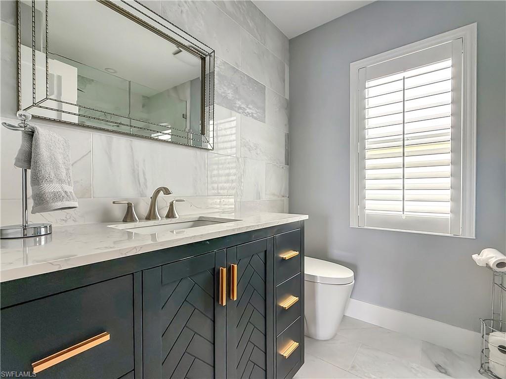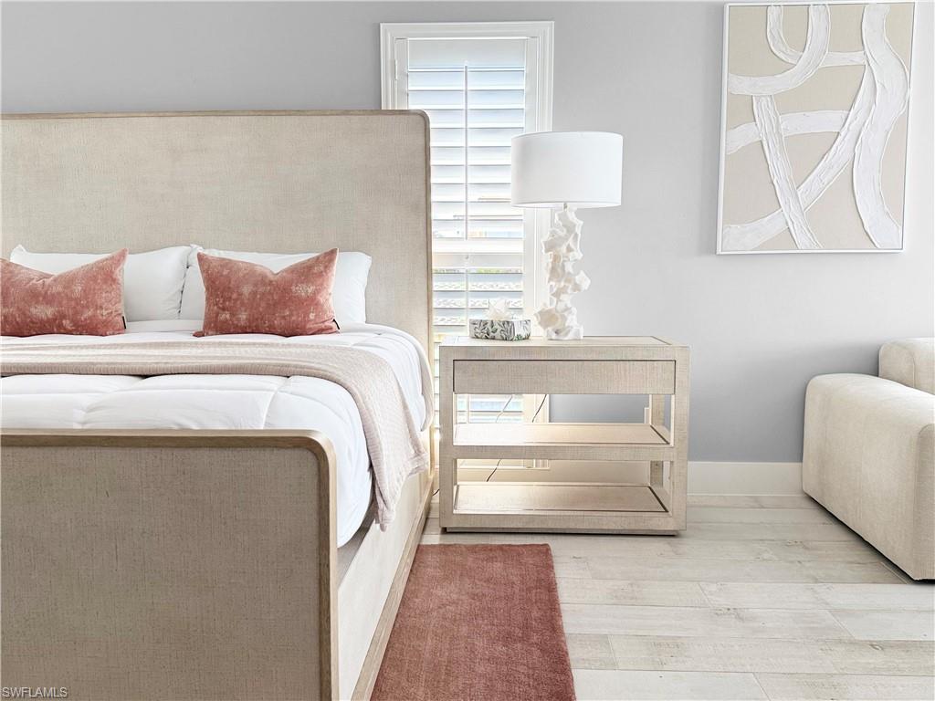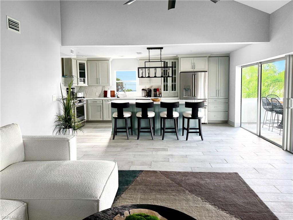 Experience coastal living in this beautifully updated beachside home located approximately 200 feet from Bonita Beach Access #8. Situated between the Gulf and Estero Bay, with a public boat launch approximately 1 minute away, this designer- furnished property offers excellent proximity to the beach, boating, dining, and recreation. HIGHLIGHTS: / Fully renovated throughout / High-end finishes / Approx. 200 ft to Bonita Beach Access #8 / Steps to public boat ramp & Bonita Boat Rentals / No HOA / Flexible multi-level layout w/ private suite / Private balcony + two lanais with porcelain flooring & in-floor drainage / 2 laundry areas (one per level) / Smart HDTVs in each room + high-speed WiFi / Ample front & rear paver driveways / Outdoor shower INTERIOR: / Quartz countertops & stainless appliances / Updated cabinetry & modern finishes / Spa-style bathrooms w/ quality tilework & rainfall showers / Updated flooring, lighting & hardware / Open, bright main living areas / Designer-furnished LUXURY UPGRADES: / Hurricane-rated windows & doors / New PEX plumbing + updated electrical w/ two new panels / Custom kitchen w/ high-end appliances / Two laundry areas w/ LG washers & dryers / Fully renovated bathrooms w/ premium fixtures / Solid porcelain flooring throughout / 1 ¾” solid-core interior doors / Custom wood closets / Custom plantation shutters (approx. $25,000) / New fire sprinkler system (if applicable) EXTERIOR & LOCATION: / All-new spacious paver front & rear driveways / Wood tongue-and-groove exterior ceilings / Updated framing, stucco, gutters & downspouts / Exterior LED recessed lighting / New landscaping, irrigation & exterior lighting / Epoxy flooring in garage & storage areas / Steps to boat ramp + Bonita Boat Rentals / Approx. 30 minutes to RSW Airport |||| Its thoughtful updates, spacious layout, and unbeatable proximity to the Gulf and Bay make it a property that truly stands out. A home of this quality and location is rarely available, and buyers are encouraged to view it in person to fully appreciate all it offers.