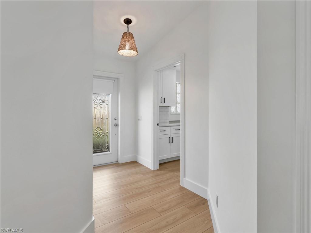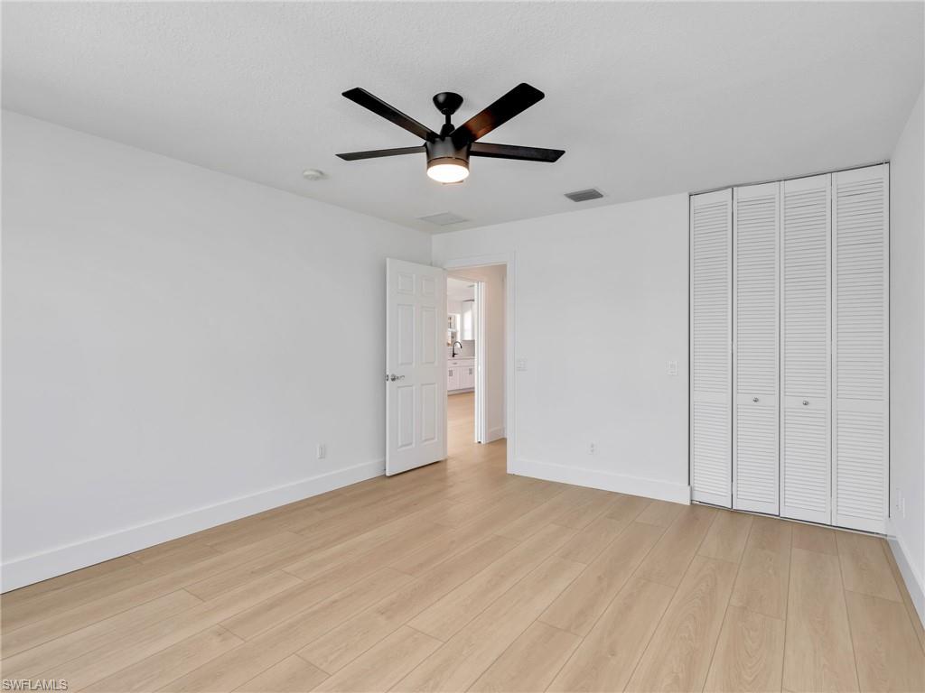 This stunning villa has been fully remodeled from top to bottom and is completely move-in ready. The interior has been entirely gutted and rebuilt with luxury plank vinyl flooring, fresh paint, new lighting throughout, ceiling fans, and custom closets for beautifully organized storage. A large family room with vaulted ceilings creates an open, airy gathering space. The den offers flexible use — ideal as a dining area, or a secondary family room. The brand-new kitchen features white shaker cabinetry, quartz countertops, stainless steel appliances, and a stylish subway tile backsplash. The laundry room offers new matching cabinetry and its own coordinating backsplash for a clean, cohesive look. Both bathrooms have been beautifully updated with designer tile, new vanities, new toilets, and all-new plumbing. Outside, a brand-new private pool overlooks a serene long lake view — the perfect setting for relaxing or entertaining. The home also offers excellent storm protection with electric shutters on the lanai and aluminum roll shutters on the rest of the home. Additional highlights include central vacuum, a newer A/C for added comfort and peace of mind and a new pool pump. Located within Verona Walk, an award-winning, guard-gated community known for its resort-style amenities — pools, tennis, pickleball, fitness center, restaurant, and more — all with low HOA fees and an active lifestyle. Dive into a vibrant social scene with a calendar full of activities and events. Additionally, conveniences are at your doorstep with a restaurant, ice cream shop, salon, travel agency, gas station, and post office all located within the community.