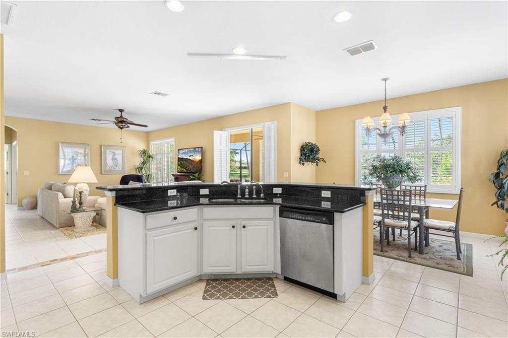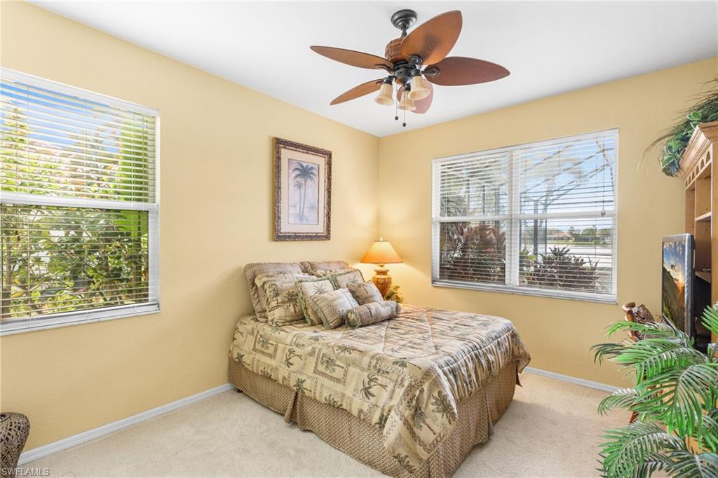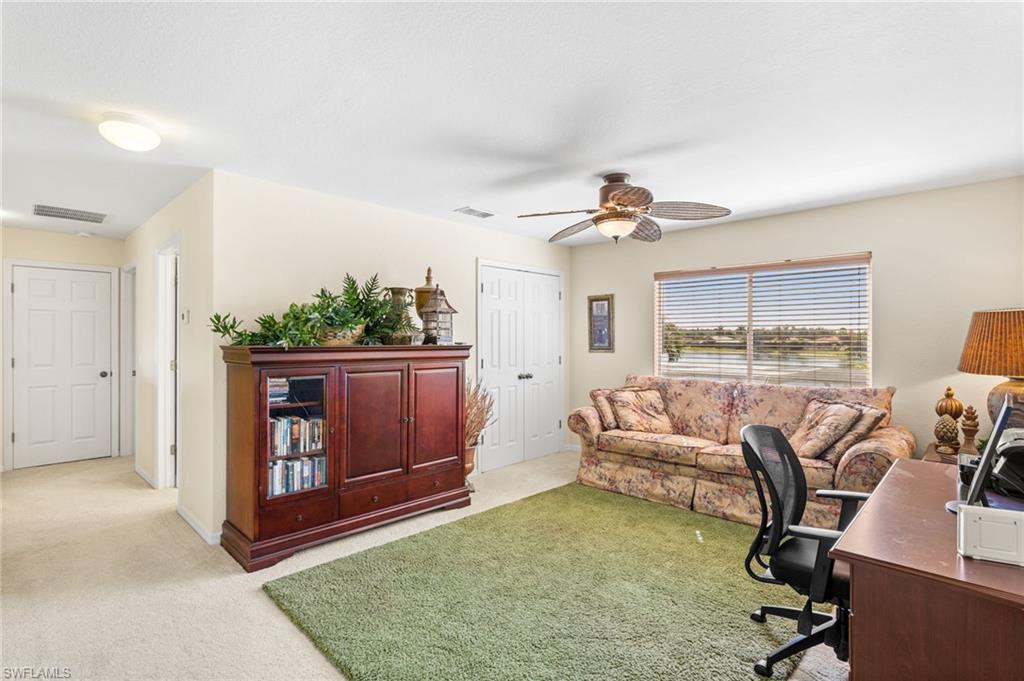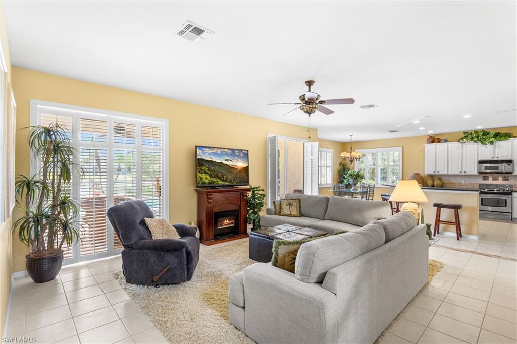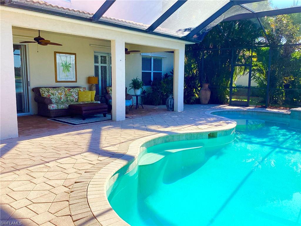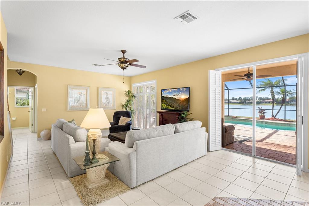 Step through the front door and you’re immediately greeted by 10 foot ceilings, a striking mosaic tile inlay, and an open, airy floor plan that feels both grand and welcoming. The layout is designed for how people actually live today—offering connected spaces for gathering, plus quiet areas for work, guests, and downtime. Just off the main living area, the first-floor den can function as a dedicated home office or hobby room, and can also be utilized as a true first-floor guest suite with an adjoining bathroom—a valuable option for multigenerational living or visiting family and friends. Upstairs, the loft flexes easily as a media room, playroom, fitness area, or second office. Thoughtful details throughout reinforce a sense of comfort, quality, and ease: an oversized 3-car garage for cars, golf gear, and storage; numerous alabaster ceiling fans; window treatments on every window; and plantation shutters in the kitchen and family room that frame the pool and wide lake views. The generously sized lot and landscaping flanking both sides of the pool create a private, resort-like oasis that feels tucked away from neighbors. The large kitchen is intentionally positioned as the heart of the home. An island offers space for prep and casual dining, while granite counters, 42 inch cabinets, a tile backsplash, and abundant cabinet and counter space support everything from quick weeknight meals to holiday gatherings. The kitchen and adjoining family room flow seamlessly to the lanai, where walls of glass invite in natural light and lead your eye straight to the peaceful water view. Upstairs, the spacious primary suite feels like a private retreat. Two walk-in closets provide ample storage, and the en-suite bath features raised dual sinks, a separate shower, and a jetted jacuzzi tub—creating a spa-like place to unwind at the end of the day. Outdoor living is a major highlight. The screened lanai, pool, and raised spa are perfectly oriented with southwest exposure, capturing warm afternoon light and memorable sunsets over the lake. The extra yard space is ideal for pets, gardening, or play, while the wide lake view adds an uncommon sense of openness and tranquility. Valencia Lakes residents enjoy low HOA fees along with a community pool and clubhouse, new Pickleball Courts fitness center, recreation room, children’s playground, basketball court, and tennis court—all in a convenient Naples location close to schools, shopping, dining, and just a short drive to the beaches. Meticulously maintained, generously sized, and set on a premier lakefront lot, 2239 Grove Drive is a compelling opportunity in Valencia Lakes for buyers seeking space, flexibility, and an indoor–outdoor Florida lifestyle. All information is believed to be accurate but is not guaranteed. All measurements, square footage, room dimensions, lot sizes, ages, fees, taxes, school information, HOA rules, and any other details are approximate and/or subject to change without notice