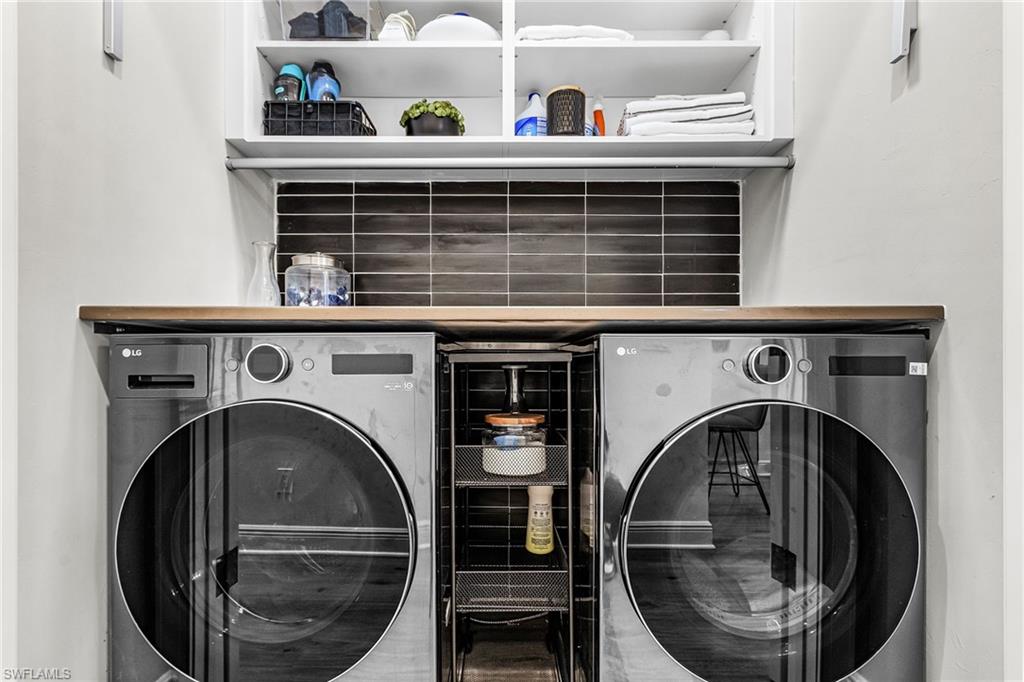 Welcome to this impeccably designed coastal residence in the gated waterfront community of Brendan Cove, offering direct Gulf access and a covered Boat Slip #2 with a 7,000-lb lift. Built in 2020 with premium craftsmanship and thoughtfully enhanced in 2025, this home lives like a modern luxury retreat. A bright, open great-room floor plan features vaulted ceilings, custom millwork, luxury finishes, and fresh designer paint. A spectacular zero-corner sliding glass wall opens the main living space to the expansive covered lanai overlooking lush preserve views and resort-style outdoor living. The chef’s kitchen blends beauty and functionality with lighted custom cabinetry, Cambria quartz countertops, stainless-steel appliances, pull-out drawers, warming drawer, and wine cooler, centered around a stunning island ideal for entertaining. The primary suite offers serene pool views and a spa-inspired bathroom with custom cabinetry, dual vanities, and a large glass-panel shower, featuring elevated 2025 designer selections and upgrades. Guest suites are spacious, private, and finished in luxury vinyl plank flooring. A private elevator and custom stairway lead to the lower level offering over 2,700 sq ft including three-car garage, workshop space, epoxy flooring, and a new air-conditioned flex room with walk-in closet—perfect as a gym, office, or studio. Outdoor living is exceptional: enjoy a custom heated pool with integrated spa, two-story screen enclosure, and 2025 professional luxury landscaping with mature tropical plantings, lighting, putting green, pavers and walkways. LED soffit lighting with color change on app. Additional features include: Impact-resistant windows & doors 8' solid core interior doors & crown molding Ring security system with cameras Gutter system with underground drains Upright freezer, Fridge, icemaker. & Duramax 1500 generator with transfer switch Brendan Cove’s private marina offers effortless access to the Imperial River and Gulf of Mexico.