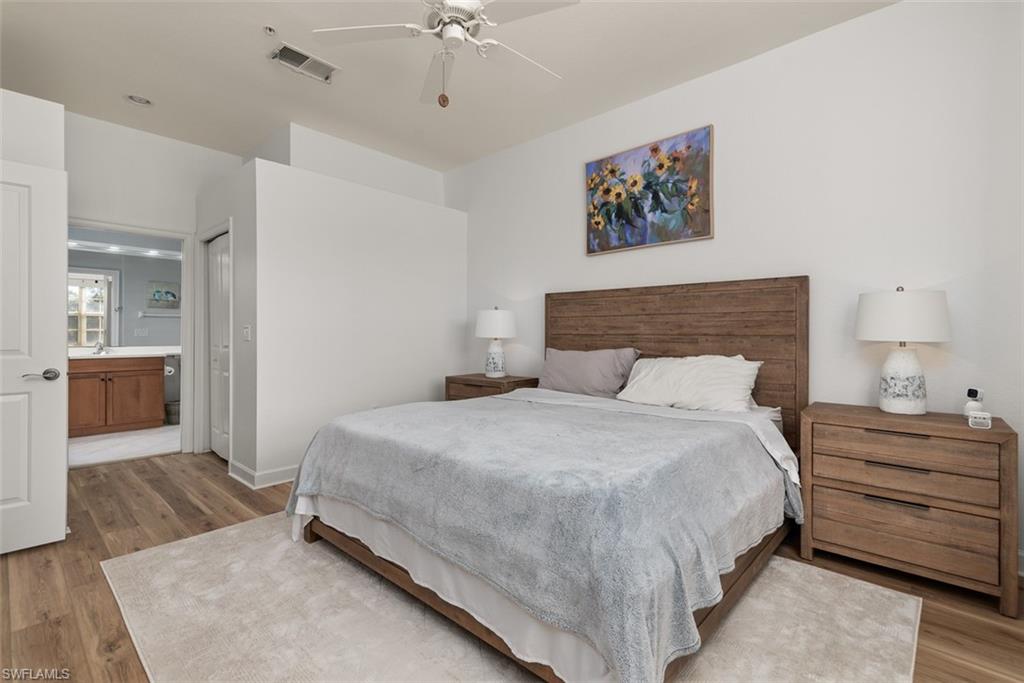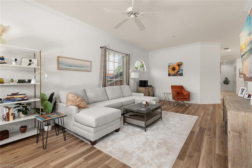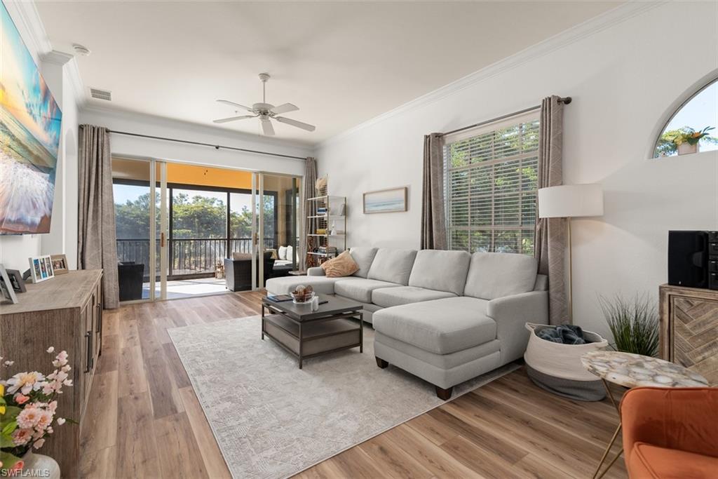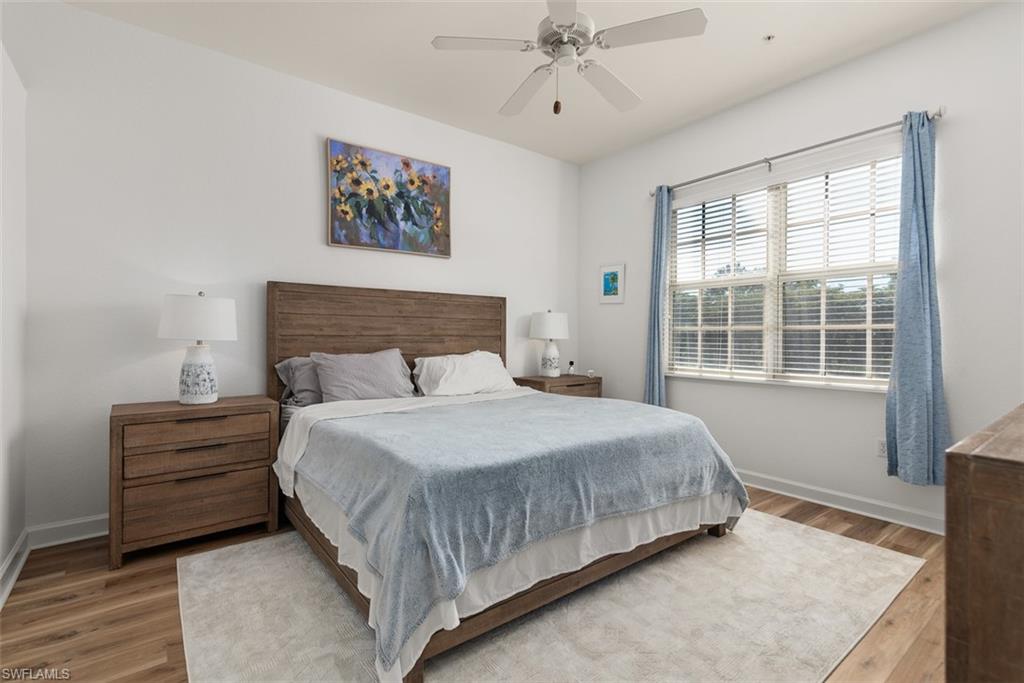 Located in the desirable Enclave section of Rapallo, this beautifully maintained second floor, end unit coach home offers resort style living in the heart of Estero. Rapallo is a Mediterranean-inspired gated community perfectly positioned within walking distance to Coconut Point Mall-with its endless shops and restaurants and soon the new Marketplace shops and restaurants directly in front of Rapallo. This units has been beautifully maintained and offers a light and bright open concept, newly installed LVT planks thoughout living area and bedrooms. A gourmet kitchen allow for entertaining and ample storage. Laundry room is off the kitchen. The Primry suite has sliding doors out to the Lanai along with Great Room out to the lanai. The Lanai has been enclosed with Plexiglass sliders providing more air conditioned square footage. This southern view is so peacefull and private overlooking lake and fountain views. DESIGNATED PARKING SPOT RIGHT OUTSIDE YOUR DOOR. You have a pool,lakehouse, and barbague area right outside your door and a boardwalk that takes you over to all the amenities that Rapallo has to offer. Some are the two Lagoon style pools with Rock grotto waterfalls, Jr olympic screened Lap pool, fitness center with a full time fitness director. Five har Tru tennis courts with full time tennis pro, Bocce Ball, bike and jogging paths, fountains and lakes troughout. An Activity Director will keep your calandar full with activiities. The Clubhouse has a full catering kitchen, and Library. Rapallo is only 12 miles to the International Airport and just minutes to our beautiful beaches. Rapallo is not in Flood Zone and had 3 year old roofs, Hurricane rated windows and is truly the safest place to be during a Hurricane.