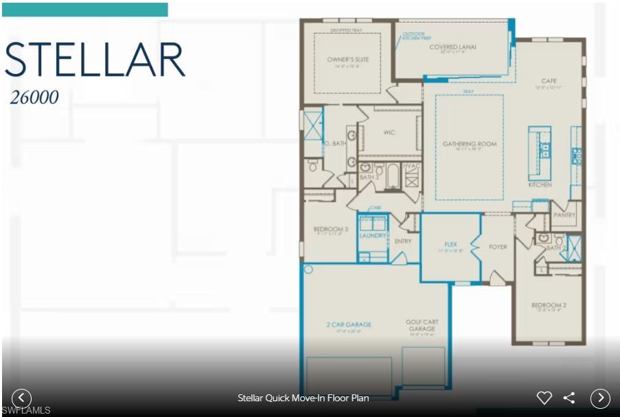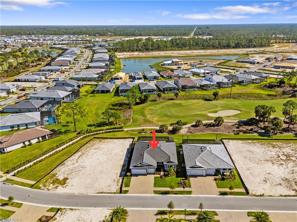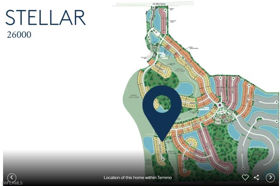 Step inside the stunning Stellar home in Terreno by DiVosta, Naples. This new construction home offers 3 bedrooms, an enclosed flex room, 3 baths, custom pool & spa, and a 3-car garage with epoxy floors. Enjoy breathtaking golf course views from this open-concept design featuring a gourmet kitchen with white, Silestone island and countertops, beautiful backsplash, built-in appliances, and upgraded sink and faucet. The versatile flex room with French doors is perfect for a home office or guest suite. Additional highlights include elegant tile flooring, super-shower in the owner's suite, an upgraded laundry room, zero-corner slider leading to your screened-in covered lanai, and outdoor kitchen pre-plumbing. Relax in the screened-in custom pool and spa or retreat to the luxurious primary suite with a massive walk-in shower, oversized closet, dual sinks, and Silestone counters. Terreno is a gated community with resort-style amenities include a 15,000 sq. ft. clubhouse with a fitness center, movement studio, HOA and lifestyle director onsite, catering kitchen, activity and card rooms, 8 lighted pickleball courts, 4 tennis courts, food truck drive-up area, party pavillion, 2 dog parks, heated resort-style pool with lap lanes, spa, restaurant bar and grill, and nearby 18-hole public golf course. This exceptional Stellar home located on a quiet street is a must-see—schedule your tour today!
