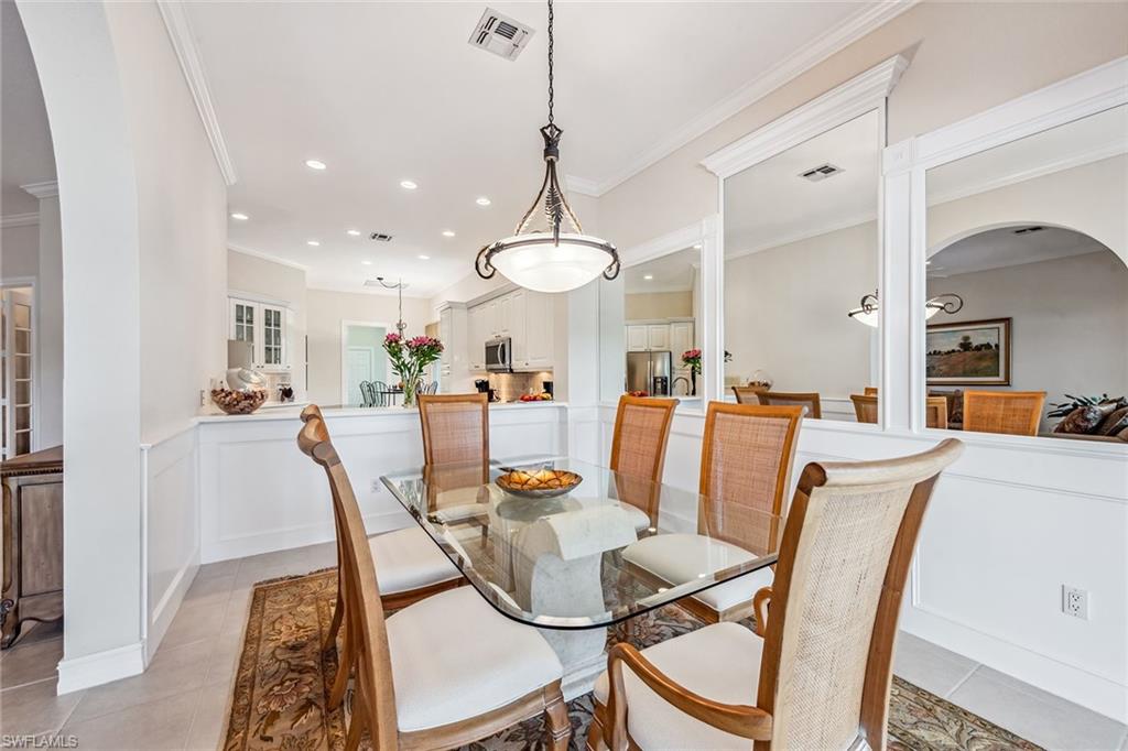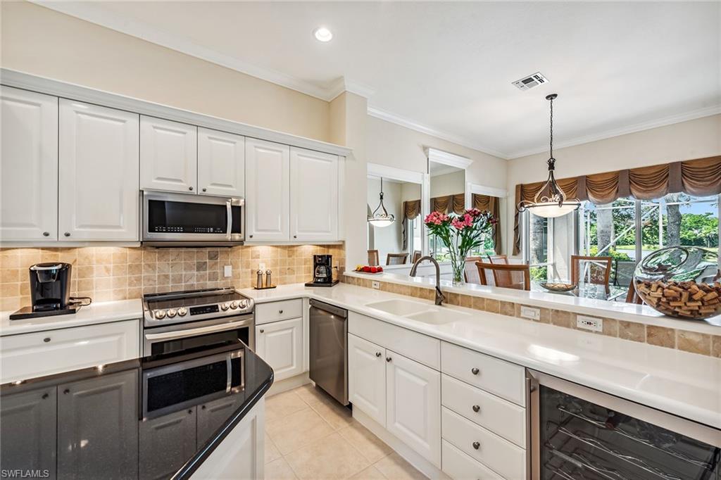 This charming and impeccably maintained Bayview single-family residence in the desirable Mallard’s Landing neighborhood enjoys serene, private western lake views and a bright, welcoming interior. Ideally, across from a quiet green space, the setting feels peaceful and secluded. Furnishings are included, and the CDD bond is paid in full. Offering two bedrooms plus a study, two full baths and a two-car garage, this home features a dramatic double-door entry, a well-planned layout, a freshly painted exterior, new coach lights and a 2018 roof, along with a paver driveway and storm protection on the lanai. The expansive screened lanai includes a generous covered outdoor living area with picturesque lake views and ample room for a future pool. Inside, abundant natural light highlights the home’s elegant finishes, including ceramic tile flooring in the main living areas, volume ceilings, crown molding, Hunter Douglas plantation shutters and blinds, and a newer HVAC system in 2023. The living room opens to the lanai through sliding glass doors, while the formal dining area-enhanced by custom mirrors and decorative wall molding-also provides access to outdoor living. The beautifully appointed kitchen features white cabinetry, a tumbled marble backsplash, recessed and under-cabinet lighting, a center island with storage and LG stainless appliances, including a range, microwave, newer refrigerator with icemaker, dishwasher and wine cooler. A cozy breakfast nook with a large garden-view window sits just off the kitchen. The owner’s suite is a tranquil retreat with garden and water views, tray ceilings with recessed lighting, elegant wall detailing and luxury vinyl plank flooring. French doors lead directly to the lanai, and the en-suite bath offers dual vanities, a walk-in shower with glass enclosure and bench, and a spacious walk-in closet. The guest bedroom also includes luxury vinyl plank flooring and an en-suite bath with a walk-in shower and linen closet, providing comfort and privacy for guests. The den is ideal for an office or creative space, complete with custom-built cabinetry, shelving and a desk area. Additional features include a well-equipped laundry room with utility sink and cabinetry. Residents enjoy outstanding community amenities, including a fitness center with classes, 10 new pickleball courts, tennis, bocce, fine and casual dining options, a resort-style pool, hot tub, sauna, steam room, spa services and a robust activity calendar. Miles of sidewalks for recreation, jogging and bicycling. Optional golf memberships, with no waitlist, provide access to the newly renovated championship golf course and the new clubhouse. Beach and marina memberships are also available. Transferable flood insurance policy is available, plus a rare opportunity to design your own new pool, an exceptional alternative to purchasing a home with an older pool.