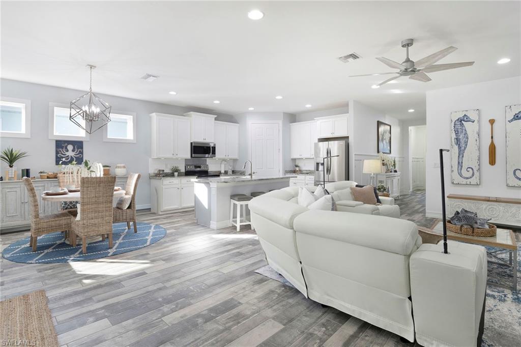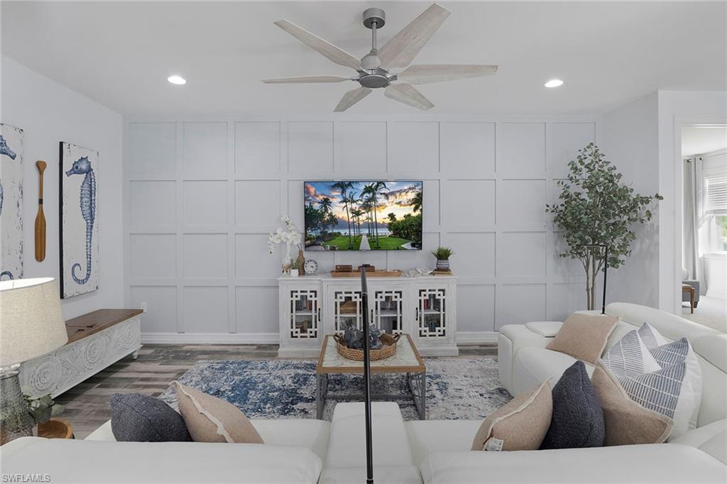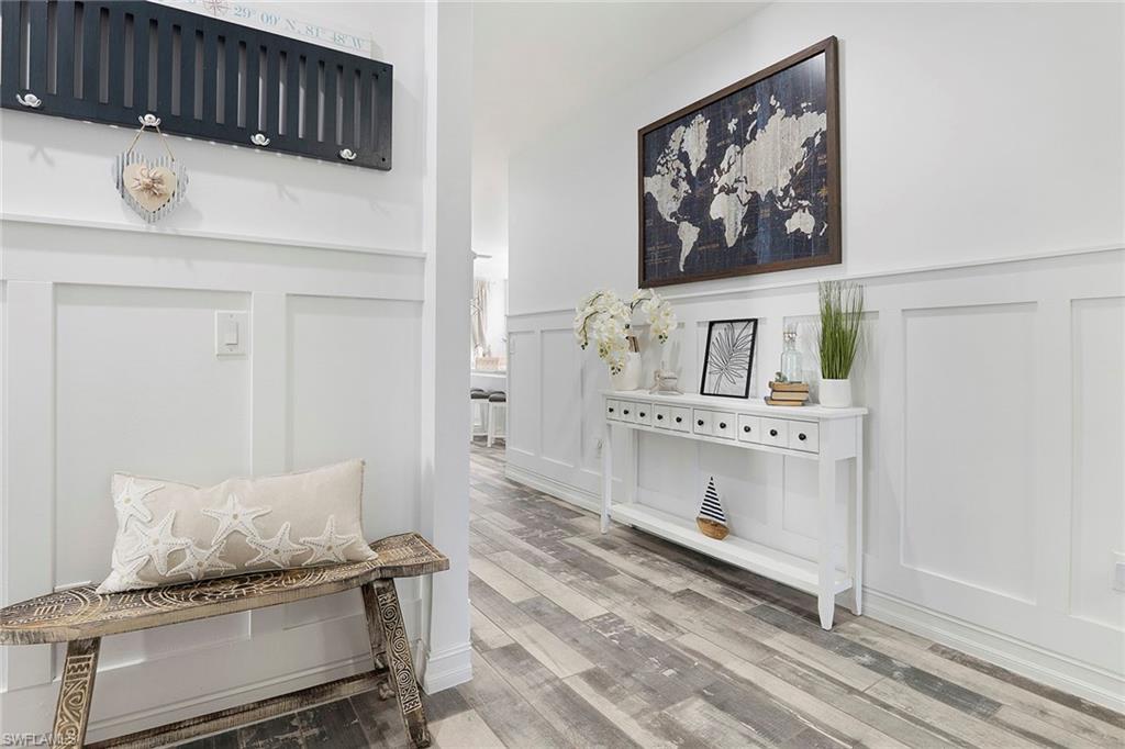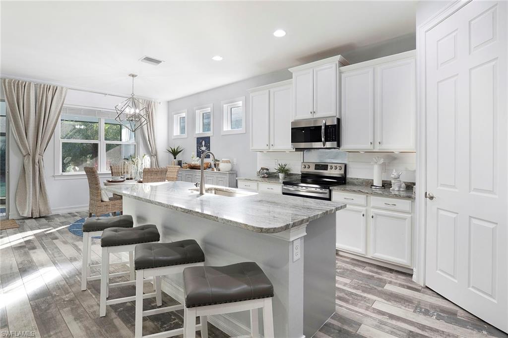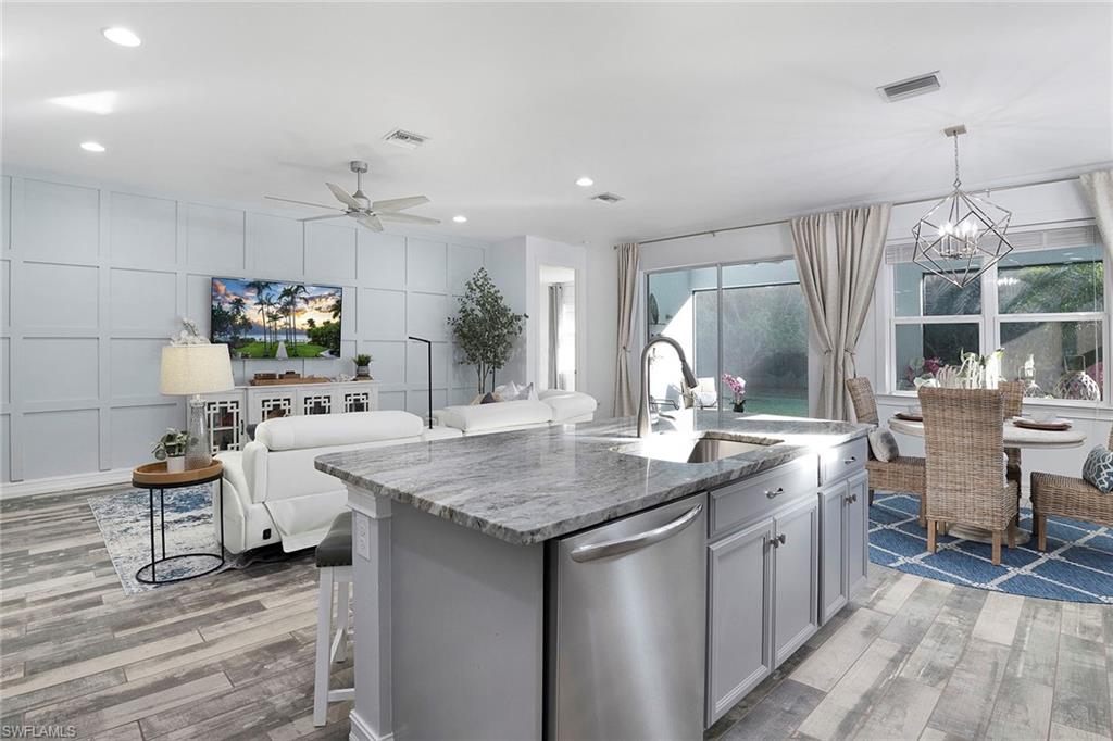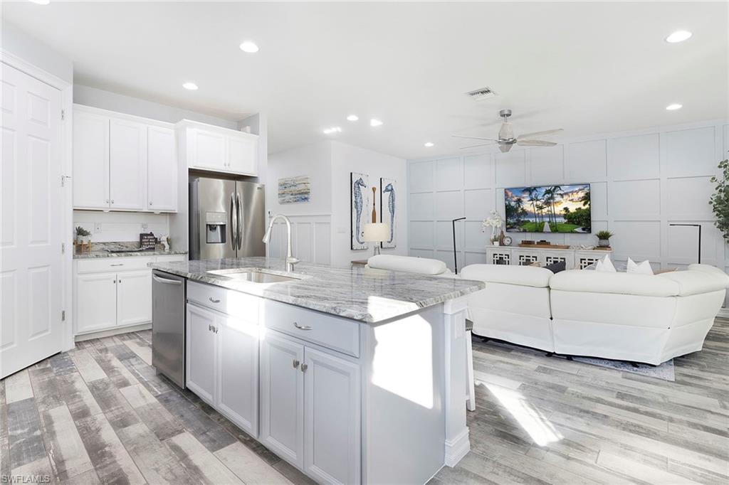 This charming, southern exposure four-bedroom home brings together charm, style and an easy sense of livability. Subtle architectural details such as custom feature walls, board-and-batten accents and wood-look tile flooring add depth and personality at every turn. The open-concept layout feels bright and connected, with granite countertops carried throughout the home for a cohesive, refined finish. Practical enhancements make the property feel exceptionally well cared for with fresh interior paint, a new washer and dryer, and an epoxy-coated garage floor that adds durability and visual appeal. Outdoors, the generous backyard expands the lifestyle possibilities, offering ample space for a future pool or a personalized outdoor sanctuary. In the sought-after, amenity-rich community of Naples Reserve, residents enjoy a lifestyle centered around recreation and connection. Miles of navigable lakes set the stage for kayaking and water activities, while the community’s resort-style features include a lagoon-style pool, fitness center, pickleball and tennis courts, a lakeside tiki bar, trails, dog parks and a vibrant calendar of activities. All this is positioned just a short drive from dining, shopping and cultural energy of 5th Avenue South, and the pristine beaches and coastal charm of Marco Island. A blend of thoughtful design, modern updates and unmatched community amenities, this home offers an ideal opportunity to experience Southwest Florida living at its best.