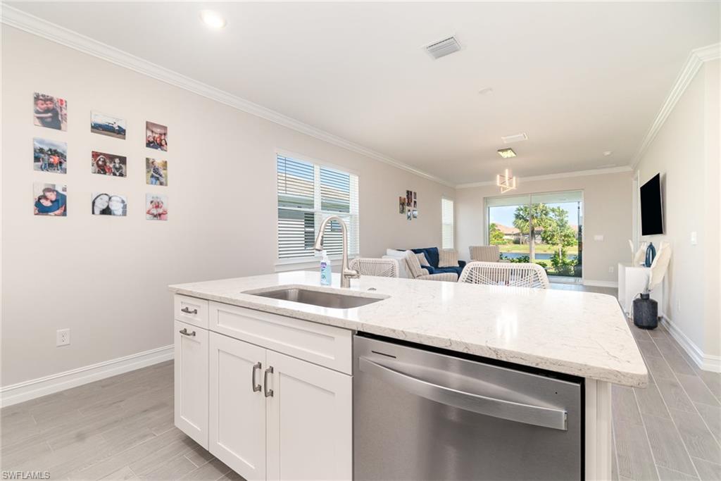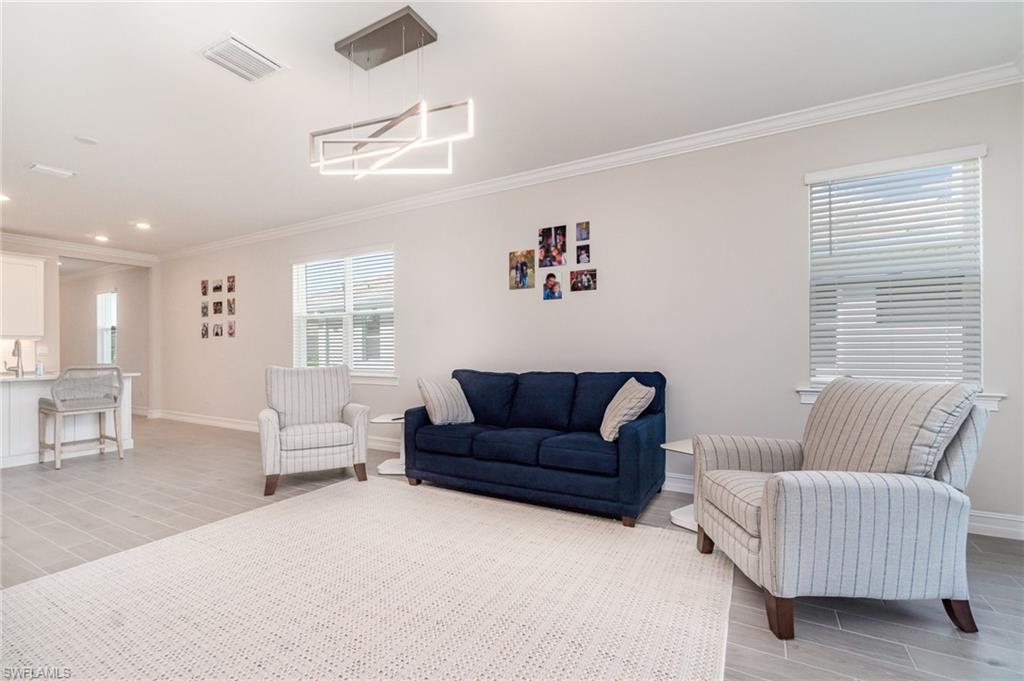 This beautifully upgraded smart home, located in the highly sought-after Seasons at Bonita community, offers 3 bedrooms and 2 bathrooms across 1,614 sq. ft. of thoughtfully designed living space. Best of all, this property requires no flood insurance. The split-bedroom floor plan provides excellent privacy, featuring a spacious primary suite with a large walk-in closet and a luxurious en-suite bathroom. The open-concept main living area seamlessly blends the kitchen, dining, and living spaces perfect for everyday living and effortless entertaining. The chef-inspired kitchen includes sleek stainless-steel appliances, a modern farmhouse sink, quartz countertops, a generous center island, and upgraded tile flooring throughout. Additional highlights include an insulated two-car garage, a covered lanai ideal for outdoor relaxation, and peaceful views of lush green spaces and local wildlife. Residents of Seasons at Bonita Springs enjoy a wide array of resort-style amenities, including a clubhouse, sparkling resort-style pool, fitness center, tennis courts, and scenic walking trails providing the perfect blend of comfort, recreation, and an active lifestyle.
