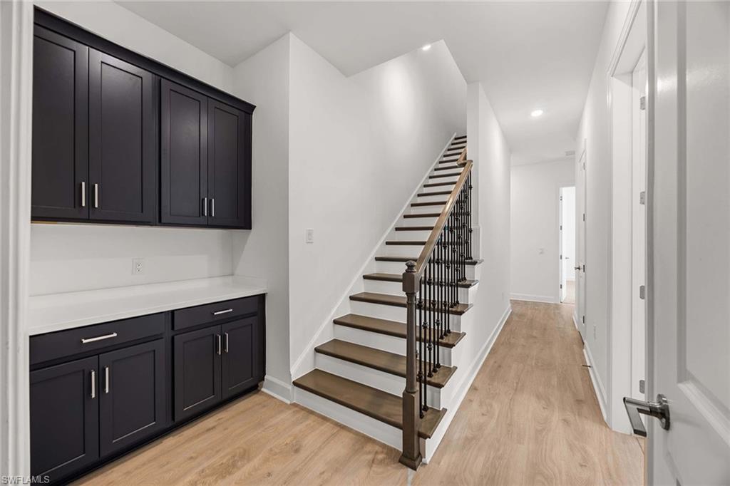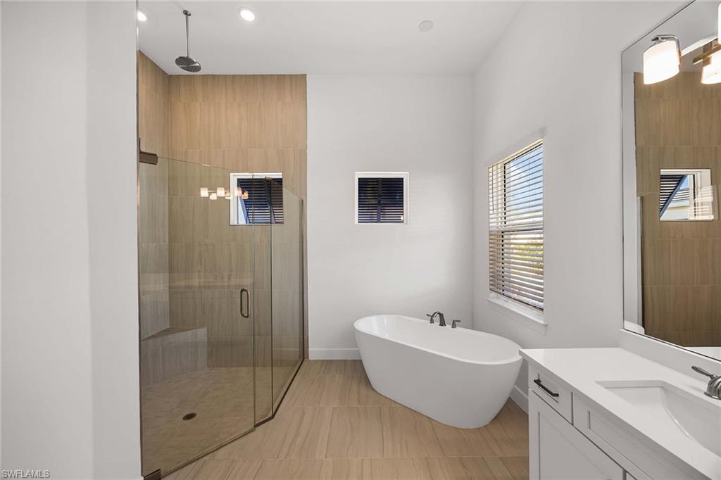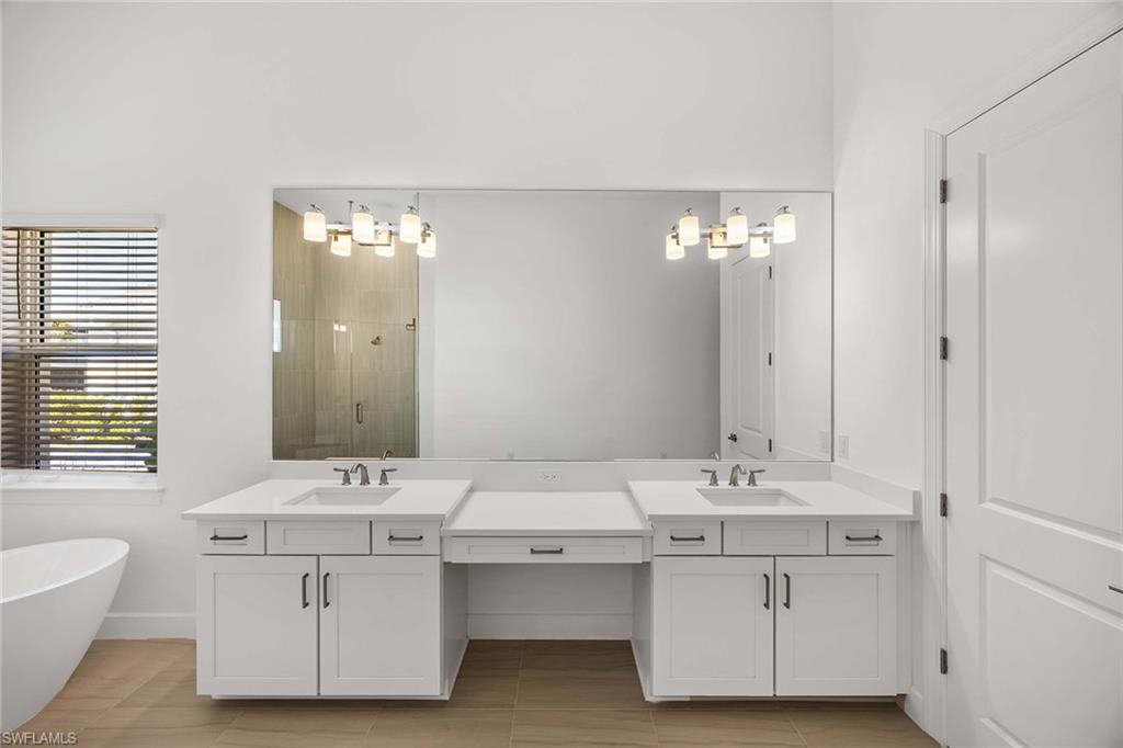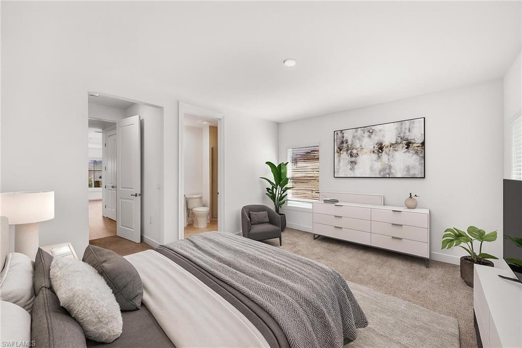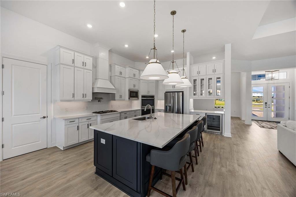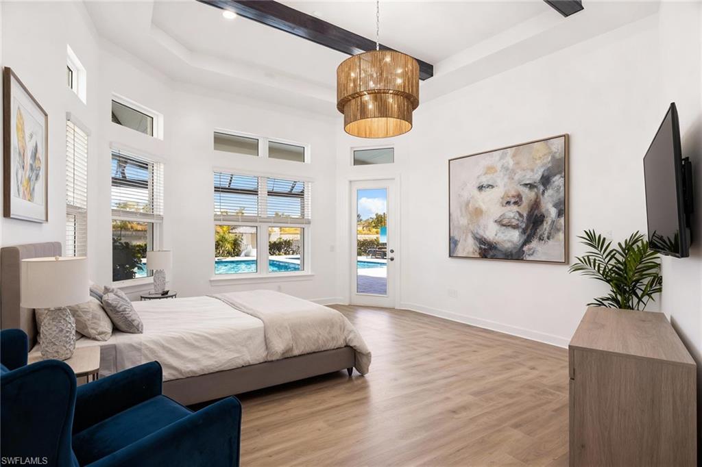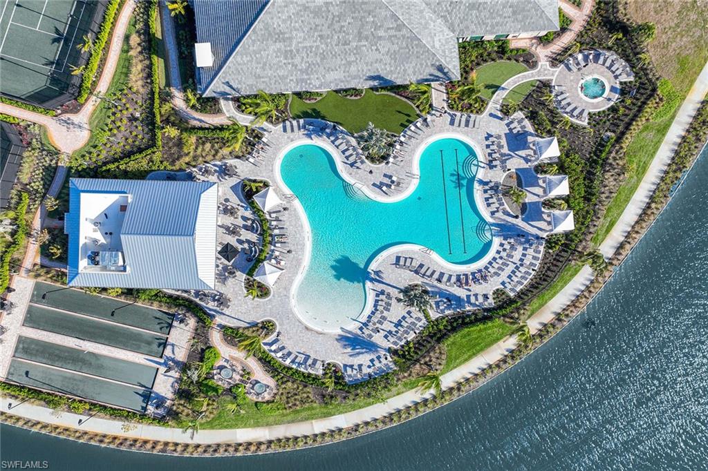 Waterfront luxury home with panoramic views! Experience wide-water views and exceptional coastal living in this luxurious four-bedroom, six-bath Beacon model located in the highly sought-after Esplanade by the Islands community. This never-lived-in, two-story residence is positioned on an oversized waterfront lot and shows like a professionally designed model home. Step inside to discover high-end finishes, an upgraded chef's kitchen with premium cabinetry and quartz countertops, and expansive hurricane-impact windows, sliders and doors that frame the breathtaking views. The great room features a stunning fireplace and seamless indoor-outdoor flow. Resort-style living continues outdoors with a custom-designed pool and spa, panoramic screen enclosure, and a fully equipped outdoor kitchen, ideal for entertaining. The second level offers additional bonus spaces, including a wet bar, ideal for guests and gatherings. This home also includes a Generac whole-house generator for peace of mind and year-round comfort. Residents of Esplanade by the Islands enjoy world-class amenities, including a resort-style pool, on-site restaurant, pickleball, tennis and a state-of-the-art fitness center, all just minutes from the renowned shops, dining and beaches of Fifth Avenue. Photos are virtually staged.