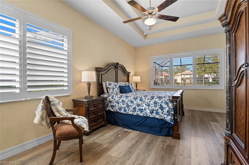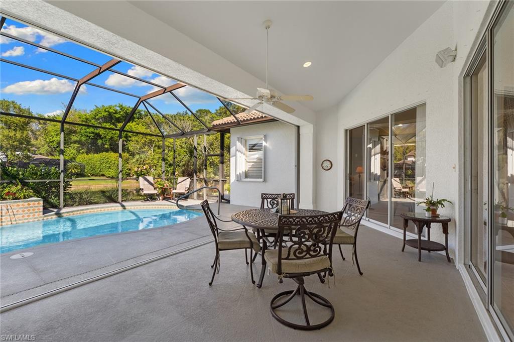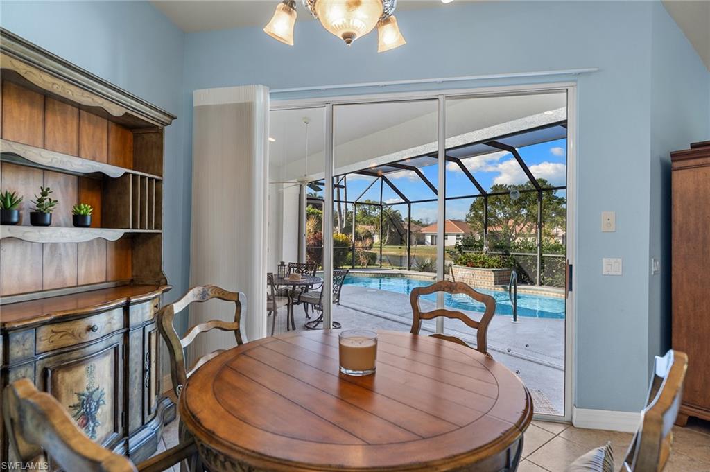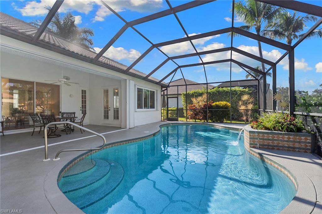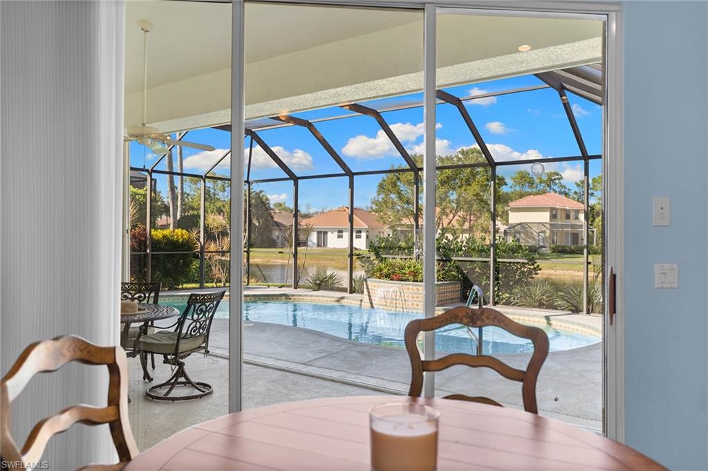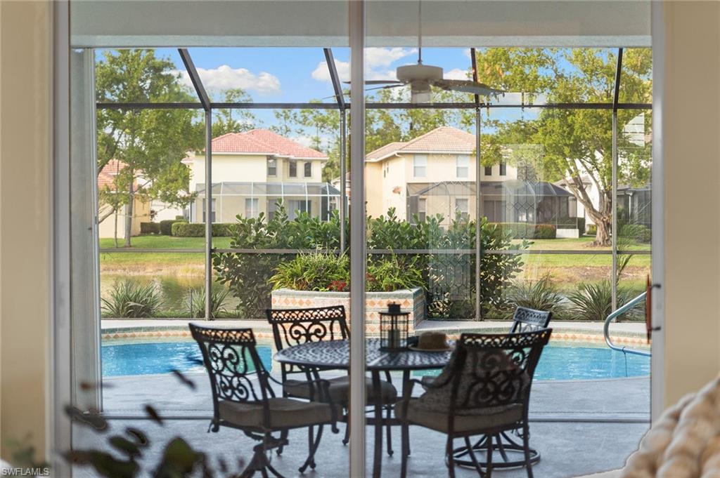 Beautifully updated lakefront estate home in the sought-after gated community of Wilshire Lakes. Situated on an oversized waterfront lot, this residence features a freshly painted exterior, newer windows, accordion shutters for storm protection, epoxy-coated garage flooring and plantation shutters throughout. Inside, vaulted ceilings and abundant natural light enhance the spacious layout. The updated kitchen offers wood cabinetry, granite countertops, newer appliances, a large center island and an eat-in area overlooking the pool and lake. With four bedrooms and three full baths, the home provides exceptional flexibility for family, guests or a home office. The primary suite includes French doors to the pool, an oversized walk-in closet and a spa-like bath. Additional living spaces include formal living and dining rooms and a generous family room. The home also features wired surround sound in the great room and lanai, perfect for entertaining or relaxing. Enjoy tranquil lake views from the private pool area and the convenience of being minutes from premier shopping, dining, I-75, RSW Airport and Southwest Florida’s world-class beaches. Located in a top-rated school district, this home offers the ideal blend of location, lifestyle and value.