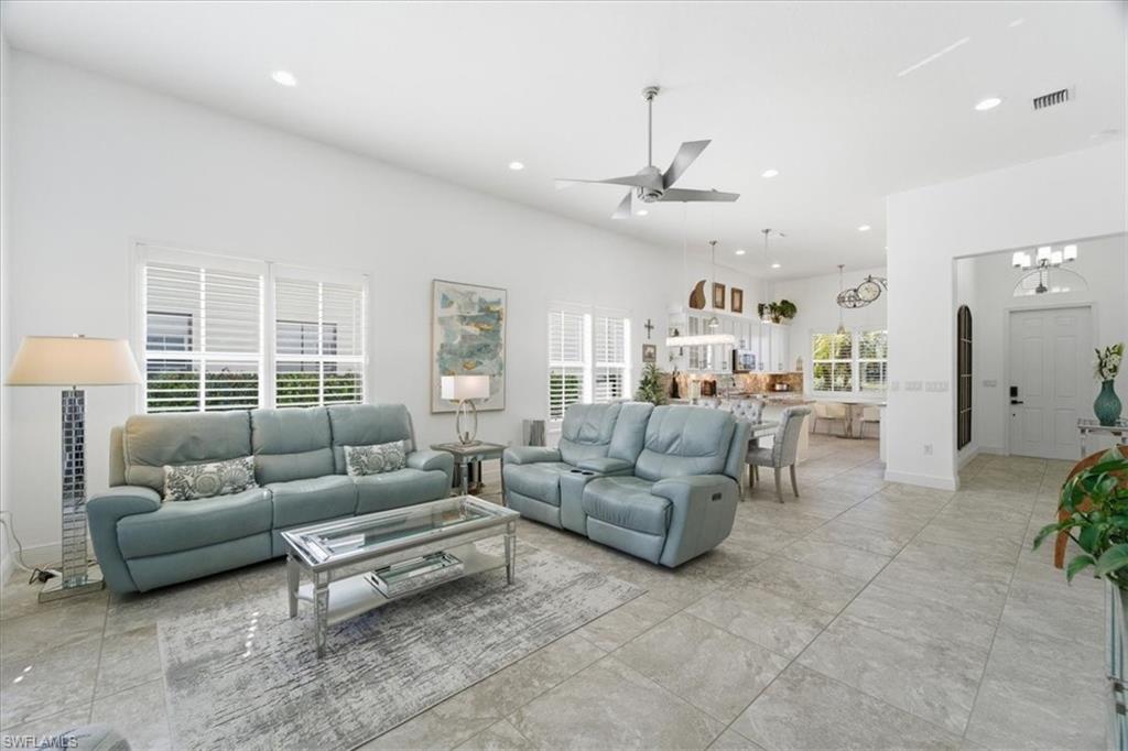 WELCOME HOME to this beautifully enhanced, upgraded Almanor home in the Maple Ridge Community located just a 1/4 mile from the center of town and Ave Maria Parish, in the Heart of Ave Maria, FL. The home features a beautifully landscaped and well-maintained yard with a wide driveway and soft accents on the exterior of the home, offering visitors a warm and inviting welcome. Situated on a quiet street with a lake in both the front and back of the home, tucked away from the hustle and bustle of traffic. Visitors will be welcomed to your home in the bright entryway hall. This 3 bedroom, 2.5 bath Almanor model boasts an open floor plan with tile floors throughout for easy low maintenance, a large kitchen, a pantry, double-layer granite countertops and complementary granite backsplash. The beautiful white cabinets are enhanced by recessed lighting with added lighting over and under cabinets adding to the room's decor. The dining area features an elegant crystal hanging light, which gives ambiance to the room. The open floor plan in the dining and living room offers plenty of space for enjoying and entertaining family and friends. The large living room area features sliding doors out to the fully screened and extended lanai with a lovely lake view. The perfect place to relax with a cup of coffee or tea in the morning while watching the birds swim about in the water. In the evening, grill your favorite meals while enjoying the peaceful and relaxing space on your screened lanai in your little piece of paradise in Southwest Florida! Other features included are a large master bedroom ensuite with the bathroom featuring two separate sink cabinets and large tub between them. The shower features a smooth pebble floor and a strip of decorative tile around the shower wall. The Jack and Jill bedrooms has a full bath between them. One of the bedrooms has a walk-in closet plus California Closets in both bedrooms. The half bath just outside the Jack and Jill bedrooms is beautifully decorated for your guests. The home also features high ceilings, plantation shutters, ceiling fans, washer and dryer in the laundry room, a double-car garage, a backyard fence, and room for a pool. Maple Ridge amenities features a zero entry resort style pool, fitness/gym, event rooms, sauna, pickleball court, outdoor exercise area, dog park, playground. Local Ave Maria amenities include: South & North Parks, community water park, Ave Maria University events open to the public, local dining & shopping plus so much more. Come enjoy the Florida lifestyle in Ave Maria, the fastest growing community in Southwest Florida!