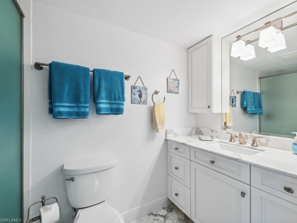 Discover luxury and tranquility in this stunning, renovated top-floor unit at Coquina Club. This beautiful residence offers 3 bedrooms, 2 bathrooms, and breathtaking views of Doctor’s Bay. Wood floors cover the main living areas, while the well-appointed kitchen features stainless steel appliances and lovely granite countertops. This property perfectly captures the essence of waterfront living, with boat slips and kayak storage available for lease, as well as a large community pool, community room, bike storage, and barbecue grills for use. One covered parking space is also included. Beach access is conveniently located directly across the street. Coquina Club recently replaced the roof, exterior handrails, and a renovated community room to be complete by January 2026. Coquina Club is ideally situated near fine dining, upscale retail, and the beautiful beaches Naples is known for.
