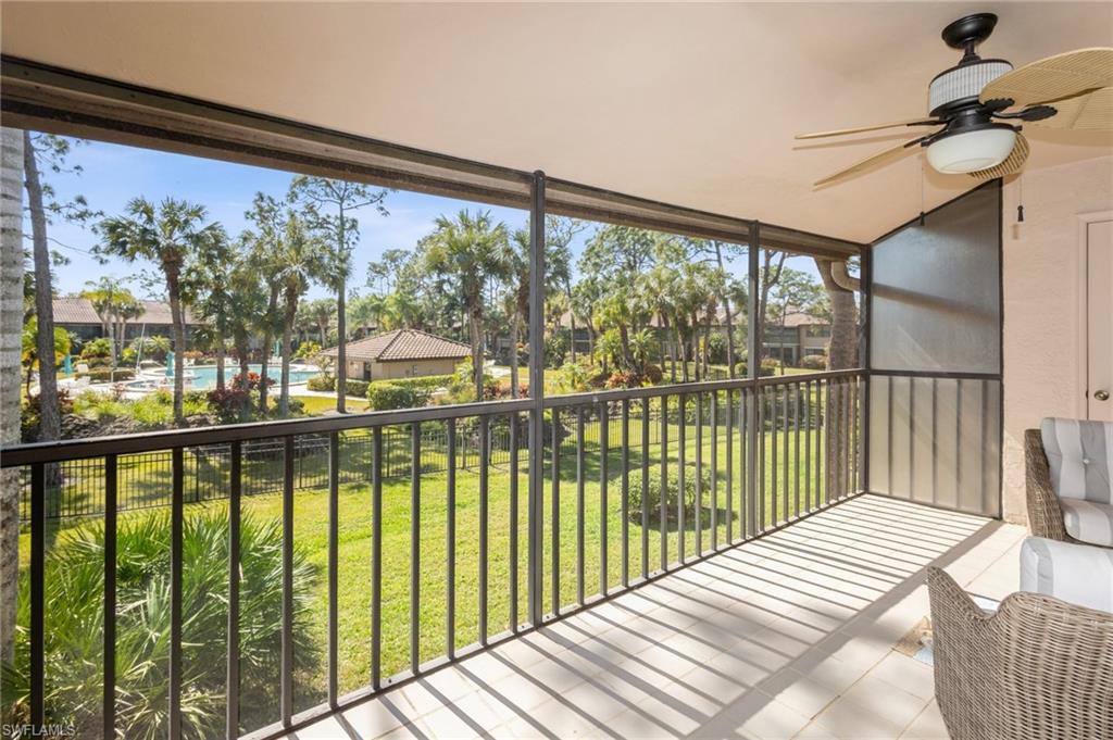 Across from Grey Oaks ! --Beautiful End Unit property with high vaulted ceilings, screened porch, & a great view! Also high-Impact windows & sliding doors installed for extra safety & security. It’s built like a fortress --- Split bedrooms, updated master bath, large master walk in closet. Single car garage, & deeded extra parking. Paver driveway , Sky lights, Extra storage , low HOA fees. This Unit occupies the entire top floor of the building. And Note: End Unit on one end, and semi-detached on the other end.....You’ll enjoy this very private location - the huge resort style pool & lush vegetation . --- Close to the beaches, shopping & downtown. You'll see that this location can’t be beat. Also check out Coach House Lane with fabulous Multi Million $$ homes