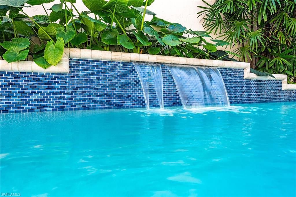Island time. Remodeled and remastered to spacious, light and bright open concept living spaces, this private courtyard villa welcomes you into a lushly landscaped, tropical and sunny, screened pool courtyard. Offering long lake views, desired long driveway and unique additional side courtyard. The separate guest house opens to spacious lap pool with waterfall wall. Open kitchen with spacious island boasts upscale appliances including induction cooktop. CocoBay offers the sought-after location only a short distance across the boulevard from the beach tram station and berm walk to Pelican Bay’s private beach and restaurants. Resort-style beach attendants offer resident members and guests chair and umbrella services, while restaurant and bar service await beachside. Enjoy all Pelican Bay amenities in this private gated community.