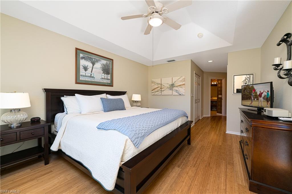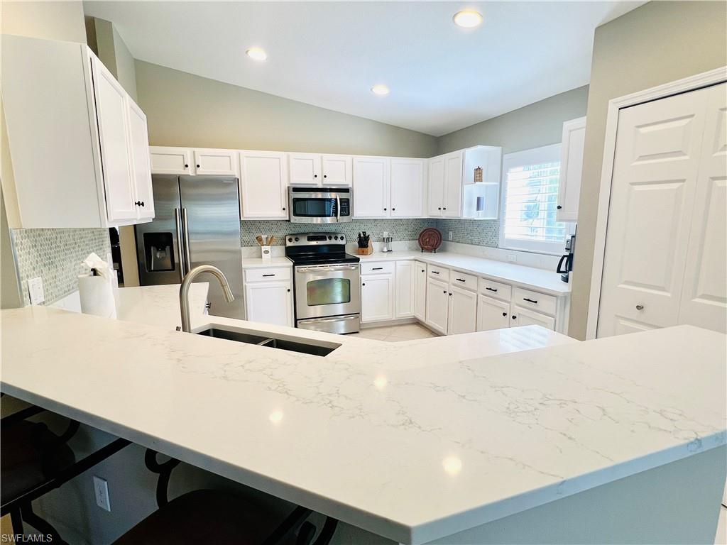 Your ideal Florida luxury-escape awaits! This beautiful 3 Bed 2 Bath condo, move-in ready, 2nd floor, furnished, CORNER UNIT, partial view of Lake & 9th hole, Social Membership & 1 car garage PLUS golf cart garage! Located in the Vines at Estero County Club, a desirable golf-optional community, with one of the finest Gordon Lewis golf courses in SW Florida! Perfectly designed for the seasonal, part-time or full time living..Enjoy your morning coffee overlooking the 9th hole & partial lake view from your own spacious L-shaped western exposure screened-in lanai, with amazing outdoor living space! Brand-New gorgeous Kitchen w/Quartz counter-tops, backsplash, white cabinets, stainless appliances & breakfast bar! New AC, 1805 sq ft spacious Open Floor Plan, a layout that's comfortable & ready the moment you arrive. 3rd bedroom w/french doors, window & walk-in closet could be used as an optional office or den space! Short walk to Community Pool. Optional Sports Memberships & Full Golf Memberships are available, but not required with NO wait list! The Vines Estero Country club is a member owned, private lifestyle community with an Award Wining Renovated Clubhouse, Full-Service Dining, & Sports Bar, Tennis, Pickleball Bocce, Fitness Center, Card Rooms, Entertainment, and Active Social Calendar where every day feels like a vacation! All of this, just minutes from premier shopping, dining, Coconut Point, FGCU and RSW Airport, Hertz Arena, Jet Blue Park with Boston Red Sox & Minnesota Twins, an the beautiful SW Florida beaches! Don't miss this one, it offers a rare blend of sophistication, convenience, and Luxury Resort-Style Living!