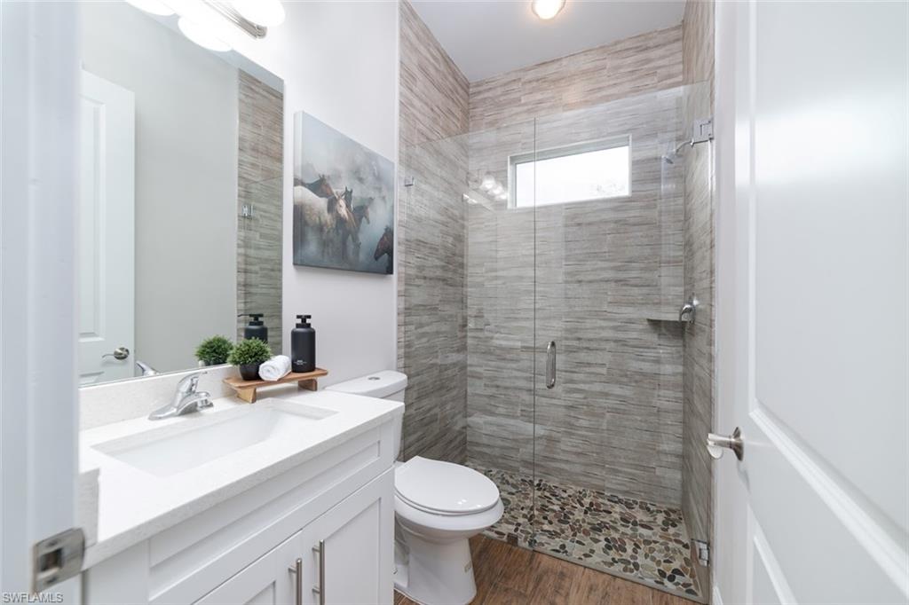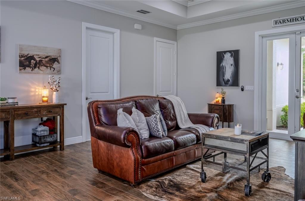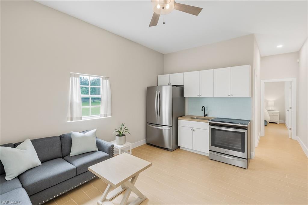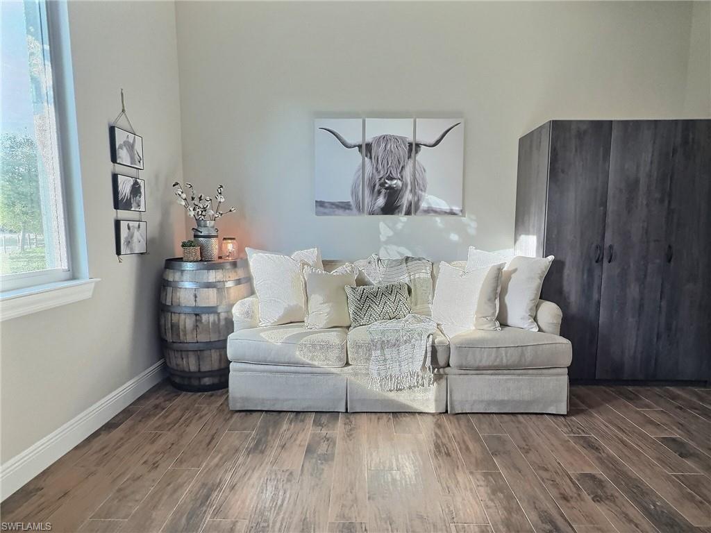 NORTH NAPLES, nearly **5 ACRES** IN TOWN!! PROPERTIES WITH THIS TOTAL PRIVACY **IN TOWN** DO NOT EXIST IN NAPLES ANYMORE, and there is NOTHING ELSE LIKE IT BEING OFFERED IN NORTH NAPLES. GORGEOUS TURNKEY FURNISHED HOME and HUGE 48x60 SHOP/BARN/OUTBUILDING. Live in total privacy with **NO NEIGHBORS IN SIGHT** yet have all the luxuries of town surrounding you? You've found it, and you won't find it anywhere else in this town. Behind you is a preserve separating you from the resort gated community of Valencia Trails, and in front of you is COUNTY PRESERVE that will never be touched. The result? Privacy that Naples can no longer offer. HOME is end of 2018 built, Concrete Block, ALL IMPACT GLASS DOORS AND WINDOWS, and LIFETIME STANDING SEAM METAL ROOF!!! This is a custom home - high ceilings with trays, minimum 10 foot and higher, custom crown molding/baseboards, wood plank tile flooring throughout, quartz countertops, farm sink, subway tile backsplash, shaker/soft close cabinets in kitchen, and river rock showers in spa-like bathrooms bring farmhouse style luxury and comfort. Enjoy serene views from your back French Doors, looking out to your barn and horse pastures. The property has in total 4 BEDROOMS PLUS DEN, 3 FULL BATHS, 2 CAR GARAGE. The Bonus Guest Apartment located in the barn is included in this count, having 1 bedroom, 1 bathroom, and its own kitchen and living area- perfect for In-laws, adult children, or guests. 48x60 BARN with concrete center aisle was built extra tall in case a future owner would want to convert it to RV storage or a shop! Horse stalls can easily be converted to parking space for someone that owns a business and needs to park machinery or trucks. In addition to the Barn Apartment for guests, in the barn there are 5 horse stalls, a storage room for Horse Feed or Tools, and a wash bay. There are 4 Separate Horse pastures, and a riding arena with groomed dirt. Property is Cleared, fenced, barn is gated and offers a separate driveway for your large equipment, horse trailers, trucks- no limitations to what you can store, park, and turn around here. Business owners, this is you! Live here and park your equipment here!