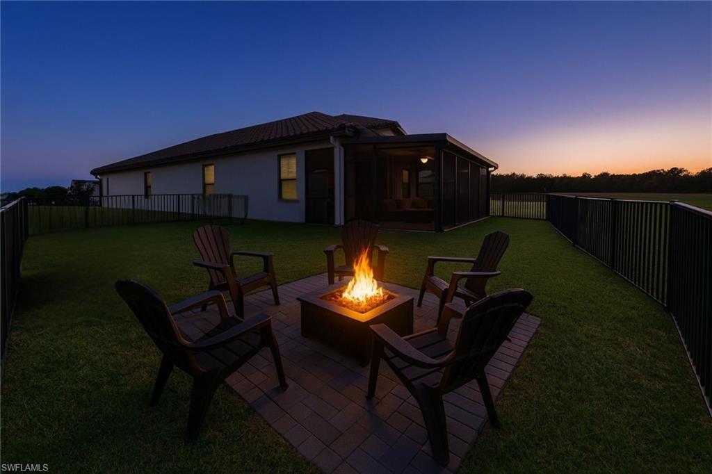 Welcome to this beautifully upgraded FERNWOOD model located in the desirable Maple Ridge community of Ave Maria. Built in 2023, this move-in-ready 2 Bedroom + Den, 2 Bath single-family home offers 1,355 sq. ft. of comfortable living space on an oversized 5,663 sq. ft. lot, set on a quiet cul-de-sac with a large fenced yard and stunning western preserve views for gorgeous Florida sunsets and complete privacy. This home features over $20,000 in upgrades, including an extended lanai perfect for outdoor living and entertaining, along with a custom backyard firepit station ideal for Florida evenings. Inside, the upgraded kitchen showcases a beautiful backsplash, premium cabinet package, trash pullout, tray divider, silverware drawer organizer, and dual cabinet pull-out shelves for maximum convenience and storage. The split-bedroom floor plan includes a versatile den—perfect for a home office, guest space, or hobby room. The garage has been thoughtfully divided into two functional sections: a 12’ x 11’ climate-controlled room perfect for a home gym, office, or guest space, plus a dedicated tool/storage area for exceptional organization and flexibility. Seller is willing to convert the garage back to a traditional garage with an acceptable offer. Beyond all of the incredible master-planned amenities Ave Maria is known for—parks, trails, community events, shopping, and recreational spaces—Maple Ridge residents enjoy exclusive access to a private clubhouse featuring a resort-style pool, fitness center, billiards room, café, community classroom, and a full calendar of social activities and events. This added layer of amenities makes Maple Ridge one of the most sought-after neighborhoods in all of Ave Maria. Enjoy peaceful preserve views, modern finishes, and a wonderful location close to everything Ave Maria has to offer. This is a rare opportunity to own a newer, well-upgraded home with unique features not typically found in this model.