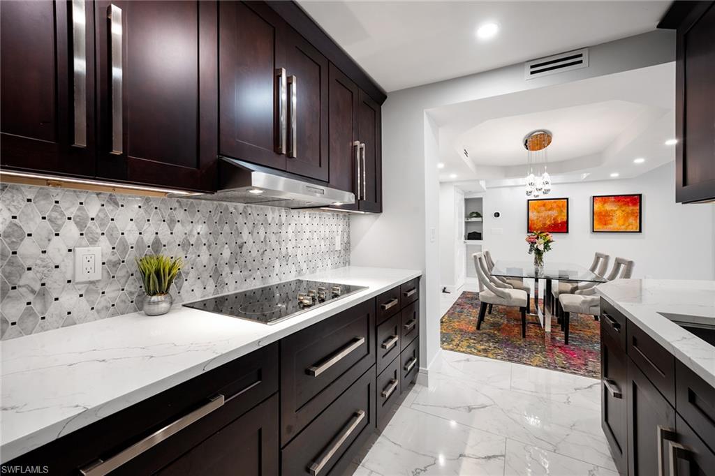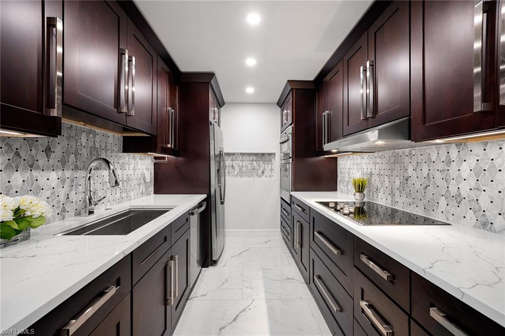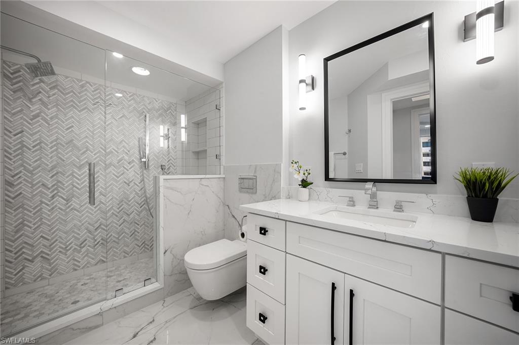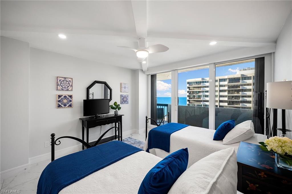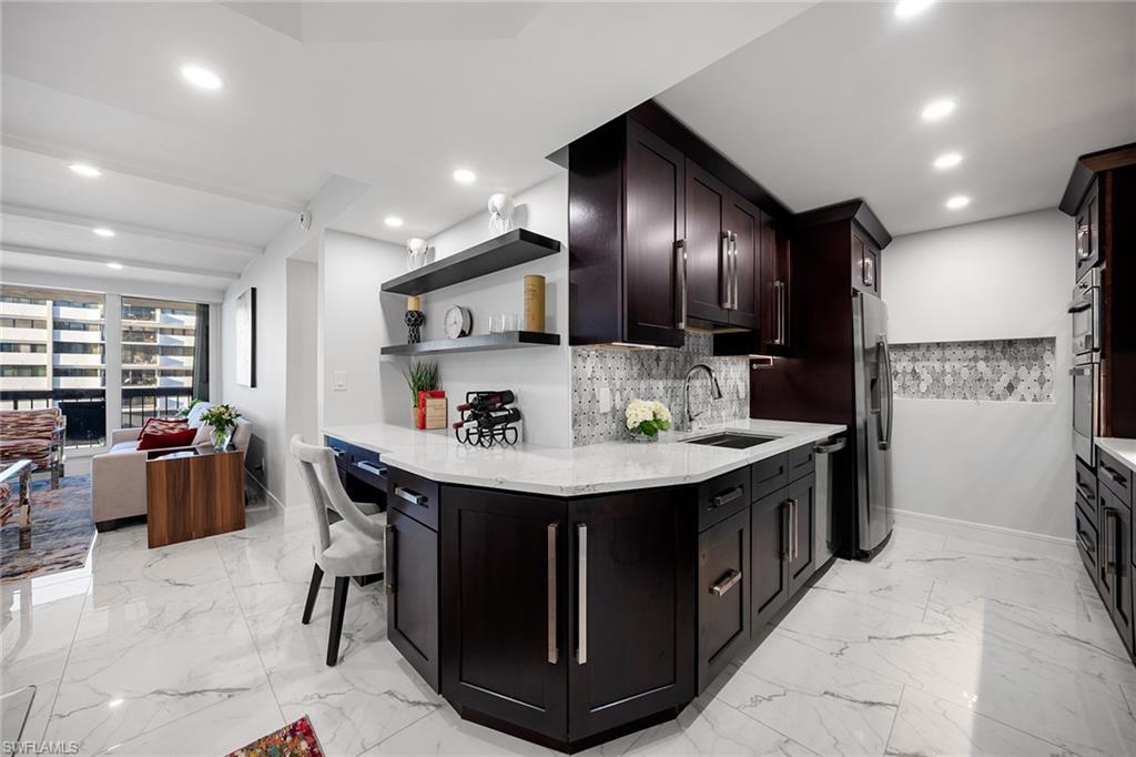 Fully renovated Park Shore two-bedroom, two-bath condominium updated from top to bottom, including electrical and plumbing. Light, bright and coastal chic, this residence welcomes you with impact sliders that open to soothing surf sounds and wide Gulf vistas. Every room spills onto the private balcony, offering breathtaking views and gentle breezes. The Surfsedge building has undergone a complete 2024-25 transformation with a stunning new lobby, two beautifully redesigned guest suites, contemporary fitness room, stylish social room, a fire pit and resort-style pool/spa/deck with Gulf-front grilling. Major structural upgrades include all-new electrical systems, building generator, updated plumbing, gated parking, new fob-secure entry, 24-hour security, new elevators, manager offices and mailroom. Residents enjoy private beach access, extra storage and bike storage. Positioned on Park Shore Beach and just a short distance to Venetian Village, minutes to Waterside Shops and downtown Naples. A must-see coastal gem.