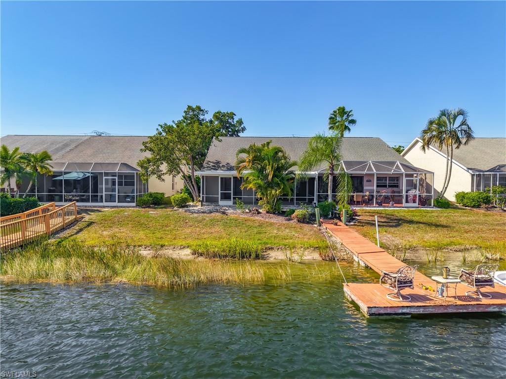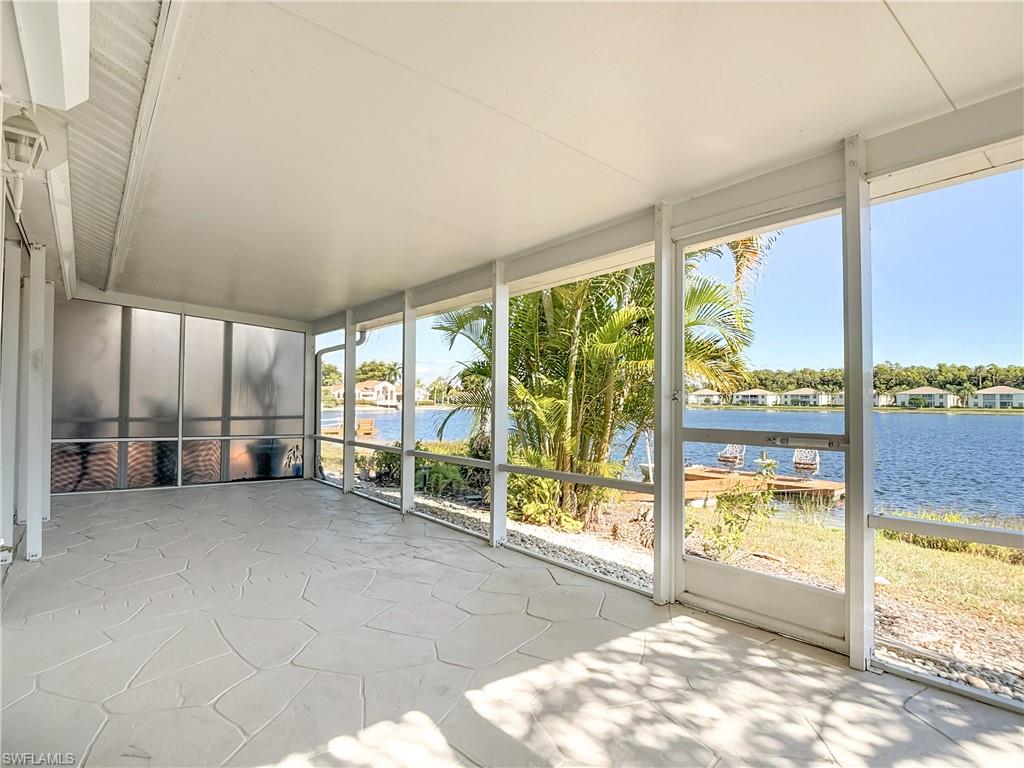 Spectacular lake front view on one of the largest lakes in Naples. Lake can be seen from living room, kitchen, sunroom, lanai and master bedroom. Two bedroom plus a den with two car garage. The floating dock is shared with villa neighbors and may be used for fishing and launching your kayak or just lounging on the dock. Freshly painted throughout with new hot water heater, dishwasher, stove and washing machine. Updated river rock tile floors in both showers. Villa is bright and sunny with natural light and ceiling lights. Lanai access from sunroom, extension of living room and master bedroom. Lake, dock access from lanai. Dock is a peaceful place to relax, feel the gentle breeze and bird watch. Turn east for sunrises and face west for sunsets. Walk to the clubhouse and enjoy the beautiful oversized pool with tranquil lake views and shade. Also available are wonderful walking options, exercise room and pickleball/tennis courts. Crown Pointe is a hidden jewel located off Davis Blvd with close proximity to downtown Naples with many dining options and shopping. Enjoy the white sandy beaches of Naples just a short 15 minutes away. Lakeport Villa association is a great neighborhood. It is friendly and welcoming with quiet neighbors. Shore birds, including egrets, herons, ibis and the occasional pelican are added attractions with the nature views of Lakeside living.