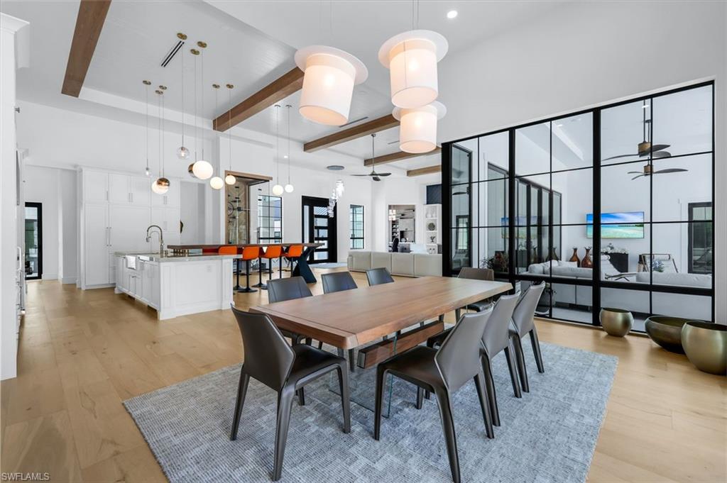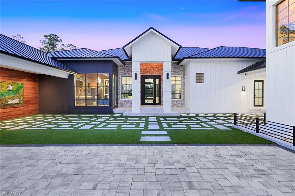 A private 2.5-acre gated entrance estate just moments from Naples’ premier equestrian center, this extraordinary estate delivers unmatched privacy, luxury, and amenities across two beautifully finished residences. Gated, fenced, and designed for both beauty and performance, the property is ideal for multi-generational living, extended guests, car collectors, or anyone seeking a true Naples retreat with room to live, entertain, and unwind. The main residence offers 5,500 square feet of light-filled living with dramatic 16-foot ceilings accented by wood beams, wide-plank oak flooring, a floor-to-ceiling windowed home office, and a chef’s kitchen equipped with Wolf appliances and gas cooking. A glass climate-controlled wine room doubles as a striking art installation. The serene primary suite provides spa-level luxury with a soaking tub, oversized luxurious shower, designer walk-in closet, and private access to the pool and gardens. Additional guest suites are thoughtfully placed for comfort and privacy. A resort-style poolside cabana suite sits just steps from the water, featuring its own lounge area, morning bar, and a spa-like shower, perfect for visitors seeking peace and seclusion. The separate guest house, just under 2,000 sq ft, lives like its own private home with two bedrooms, two bathrooms, full kitchen with eat-in dining, spacious living room, full laundry, a lofted flex room, and a private balcony. Ideal for long-term guests, staff, or extended family. At the center of the estate is a show-stopping 50-foot gas-heated saltwater pool with a sun shelf, wrapped in 8,500 square feet of sand-blasted marble decking. A fully equipped outdoor kitchen, tiki hut, multiple lounging areas, and lush tropical landscaping create a true resort-style oasis. Car collectors will appreciate the rare climate-controlled 10 plus car garages with soaring ceilings, polished floors, and a dedicated lounge area overlooking the vehicles, an exceptional space for showcasing prized autos or hosting gatherings with friends. The property also offers room for horses, just one block from the equestrian center, combining luxury living with true equestrian opportunity. This eco-forward, high-tech estate includes a buried propane tank that powers the gas range, gas pool heater, and whole-house generator. Landscape irrigation covers the entire property and all garages are air-conditioned for comfortable workspace and pristine storage year-round. Foam insulation in the attics enhances energy efficiency, keeping the home comfortable year-round while lowering utility costs. Perfectly located, peaceful and private yet just minutes to Naples’ white-sand beaches, world-class dining and shopping, and a quick 25-minute drive to RSW Airport. A true Naples estate offering privacy, luxury, and resort-level amenities.