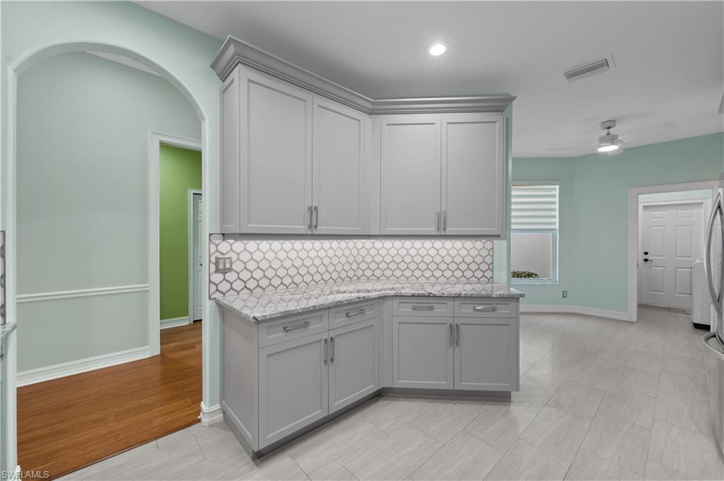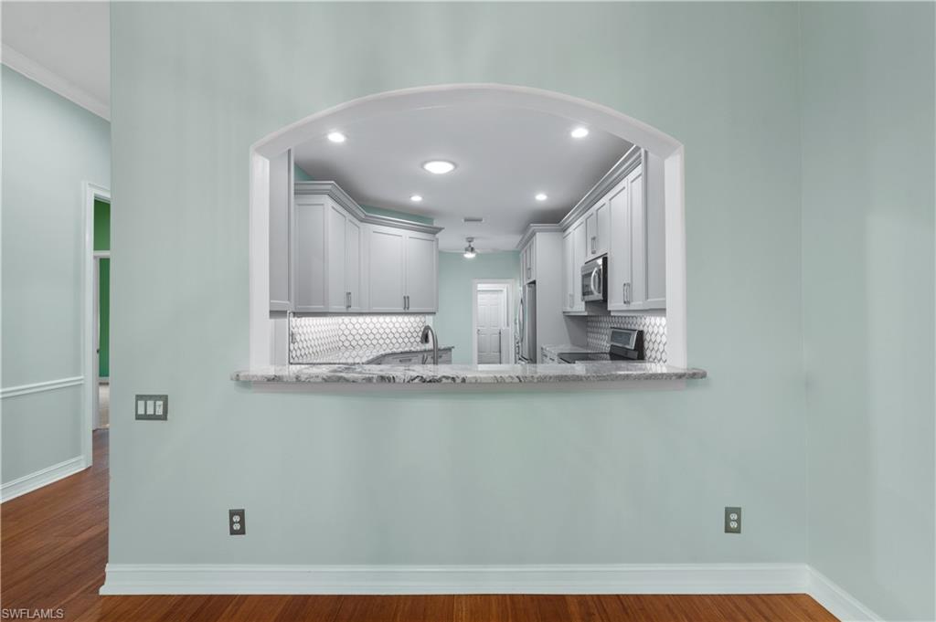 Welcome to this impeccably renovated carriage home tucked inside the highly sought-after Tarpon Cove community. This elegant residence lives like a single-family home and showcases high-end finishes throughout- including a custom designer kitchen with luxury cabinetry, premium appliances, and built-in bar with wine fridge and a dedicated coffee station. Beautiful wood flooring flows through the main living areas, complemented by plantation shutters, electric window shades and impact resistant windows for year round peace of mind. The spacious screened lanai features an electric hurricane shutter allowing you to secure the space with ease. Set on a private cul-de-sac this home offers serene setting and an expansive backyard- perfect for evening relaxation and taking in the west-facing sunset exposure. Just minutes from Wiggins Pass and Vanderbilt Beach, the location is ideal for coastal living. Residents also have the opportunity to join Tarpon Cove's highly coveted membership, which includes a private boat shuttle to Delnor-Wiggins Beach, state of the art fitness center, fine dining restaurant, social events, resort-style pool with poolside service, tennis and bocce courts. Experience luxury, convenience and coastal charm; make this move-in ready home yours, today!