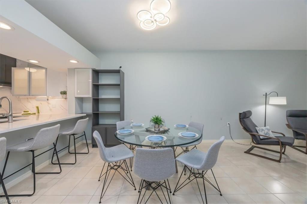 Step into easy Florida living with this beautifully updated first floor end residence in Amelia Lake at Falling Waters. Set in a private and peaceful location, this three bedroom, two bath, 1-car garage home offers a welcoming layout with modern touches throughout. The remodeled kitchen features sleek cabinetry, stainless steel appliances, a stainless hood, a tile backsplash, quartz counters and a spacious single level peninsula. Tile flooring runs through the main living areas, with wood look tile in the bedrooms for a warm and stylish finish. The oversized screened lanai invites you to relax while enjoying the serene landscaped backdrop. The large primary suite includes sliding glass doors to the lanai, generous closet space, and a refreshed bath with dual sinks and a walk-in shower. Falling Waters is known for its active lifestyle and impressive amenities, including one of largest resort style pools at eleven thousand square feet. Residents also enjoy tennis, bocce, shuffleboard, and more. All of this comes with an exceptional location just minutes from Downtown Naples, the fine dining and boutique shops of Fifth Avenue and Third Street, and the beautiful white sand beaches along the Gulf.