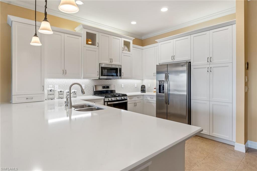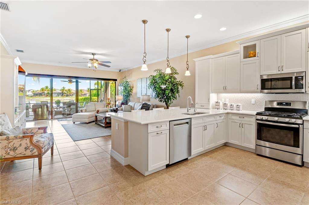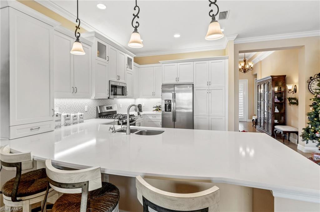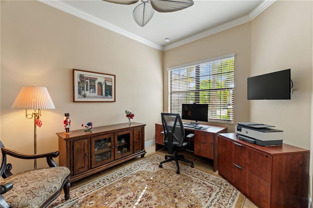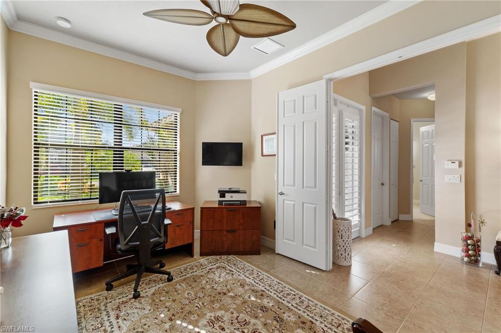 *Price Improvement* Private, OVERSIZE LOT with fenced yard. Welcome to an immaculate 3 Bedroom + den, 2.5 bath residence situated on a premium over-sized, fenced lakefront lot, perfect for pets or kids to enjoy! Take in long lake views from your private, fully fenced backyard, enhanced by an extended patio area perfect for gatherings, grilling, or simply taking in the peaceful waterfront scenery. Inside, the home features a spacious layout with a dedicated den, ideal for a home office, study, or flex space. The open-concept living areas are filled with natural light and flow seamlessly into the kitchen and dining spaces, creating a warm, inviting environment. Upgrades include a full-house natural gas generator, electric storm screens on lanai, full-house water treatment system, pre-plumbing for outdoor kitchen, accordian shutters, epoxy finish in garage, and much more. Stonecreek is one of Naples' most desirable gated communities, offering a resort-style lifestyle with amenities including a clubhouse, fitness center, resort and lap pools, splash park, tennis, pickleball, basketball, social activities, and more. All just minutes from top-rated schools, shopping, dining, and Naples’ renowned beaches.