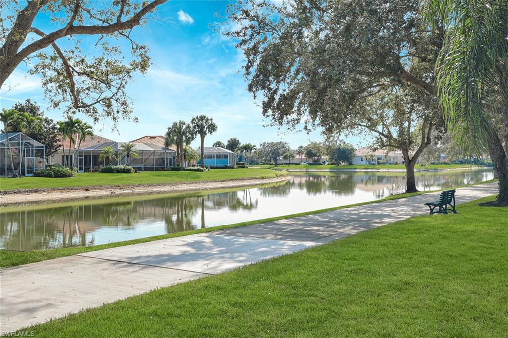 Rarely available luxury estate Manor residence in the desirable gated community of Village Walk in North Naples. The largest Divosta floor plan offers over 3,200 square feet of refined living with four bedrooms and three-and-a-half baths, and this home is situated on a premier cul-de-sac lot with beautiful lake views. This spacious residence has so much to offer, including a three-car garage and a large decorative driveway for ample parking. Additional features include lush landscaping, a screened front entry, plantation shutters throughout, two HVAC systems that allow maintained comfort throughout the home, plus both electric and manual storm shutters for peace of mind. The primary suite feels like a private retreat with walk-in closets, a sitting room, and a generous dual en-suite bath. All guest bedrooms have private access to a bath and the powder room allows convenience for guests. The neutral kitchen offers a double oven, Sub-Zero refrigerator, and breakfast bar seating that overflows into a cozy morning room. Step outside into a screen-enclosed private oasis showcasing a recently renovated custom 36-foot heated pool and cascading spa overlooking stunning lake views for your relaxation or entertaining enjoyment. The exceptional Towncenter amenities are within a short walking distance and include a restaurant, resort pools, fitness center with lap pool, hair salon, tennis, pickleball, bocce, and more. All in a prime North Naples location with endless walking and biking paths, and just minutes from local beaches, restaurants, and shopping. Village Walk is within an A-rated school district, and the school buses pick up inside the community.