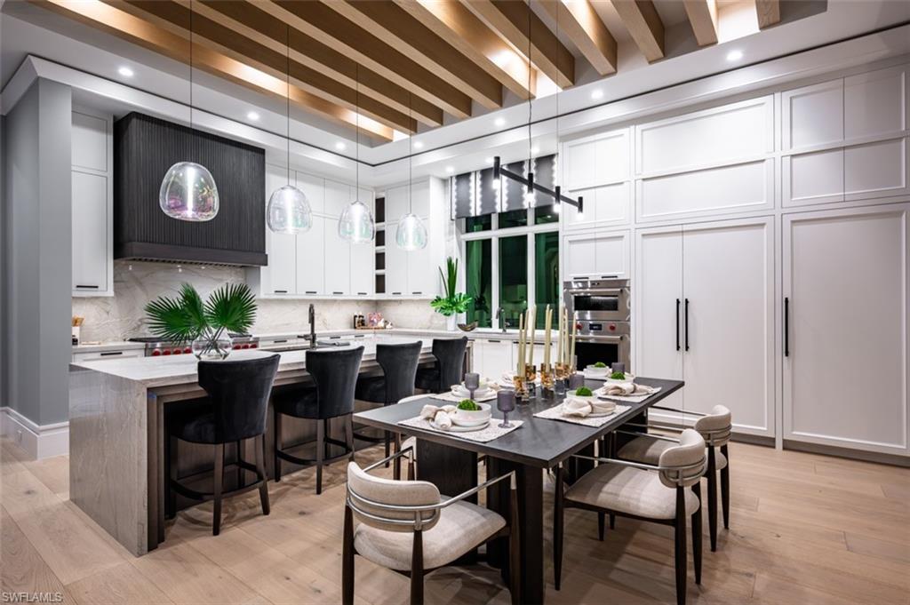 Indulge in the pinnacle of coastal luxury with this spectacular new-construction estate, perfectly positioned on the shimmering bay in prestigious Park Shore. Masterfully crafted to evoke the ambiance of a world-class resort, this breathtaking residence blends architectural excellence with sweeping white-water views, creating an unmatched living experience in one of Naples’ most coveted waterfront enclaves. From the moment you enter, walls of glass draw your eye directly to the bay. Every room is thoughtfully designed to blur the line between indoors and out, capturing the essence of elevated Florida living at its finest. The primary suite is a sanctuary of indulgence—an expansive retreat featuring a tranquil sitting area and spa like bath offers a true rejuvenation experience with multiple showerheads, exquisite stonework, and custom cabinetry that showcases both craftsmanship and elegance. Massive walk-in closets with beautifully executed built-ins provide unparalleled storage and display. The culinary spaces are equally extraordinary. Anchored by a professional gas range and multiple ovens, the showstopping chef’s kitchen is complemented by a full butler’s kitchen, walk-in pantry, beverage center, and an elite suite of top-tier appliances. Multiple dining areas—both formal and casual—flow seamlessly into sophisticated gathering spaces enhanced by custom fireplaces, designer lighting, soaring ceilings, and impeccable architectural detail. The outdoor living experience rivals the world’s finest resorts. Vast, covered terraces overlook the wide bay, inviting you to unwind in multiple lounge and conversation areas. The outdoor kitchen is fully equipped for open-air entertaining, while the resort-style pool—framed by panoramic water views—creates a dramatic focal point that transforms each sunset into a private show. A private elevator, four-car garage, loft area, executive office, and beautifully appointed guest suites complete this one-of-a-kind offering. Every finish has been curated with precision, every detail executed to perfection, and every space designed to elevate your lifestyle. This is more than a home—it is a statement of luxury, craftsmanship, and refined waterfront living, delivering the ultimate resort-style experience in the heart of Park Shore. Brought to you by Knauf Koenig Builders, Falcon Design Inc. and Clive Daniel Homes.