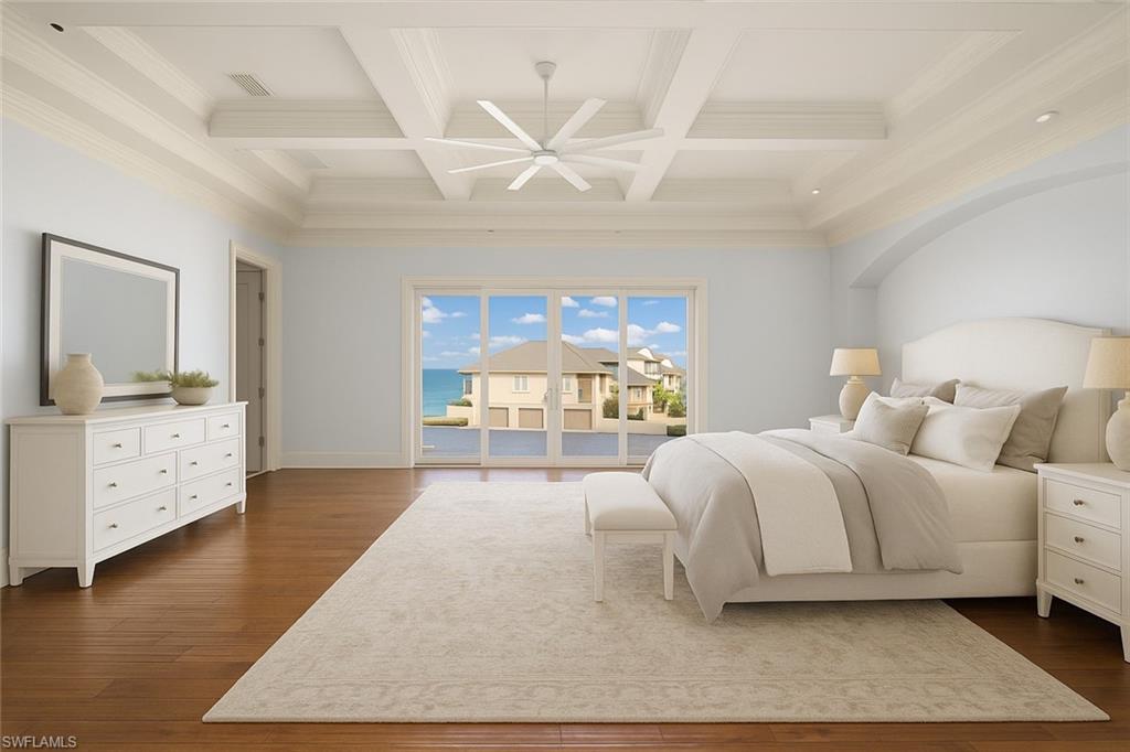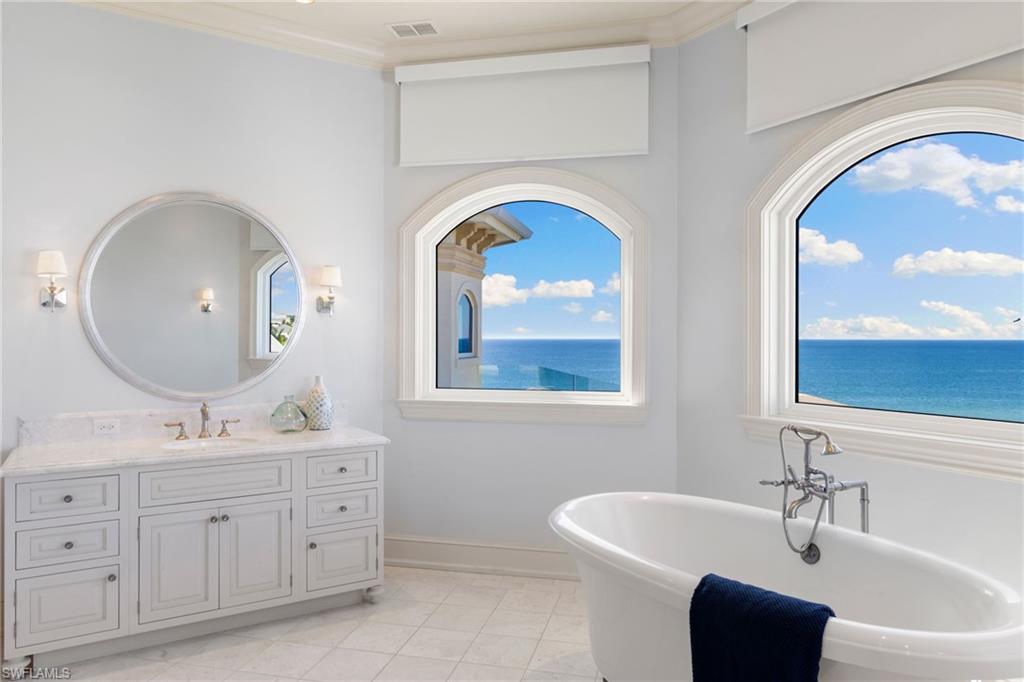 Elegance defined along the shoreline. This extraordinary beachfront residence captures the essence of refined coastal living with panoramic Gulf views and luxury woven into every detail. The entire fourth floor is dedicated to a private master sanctuary - an expansive retreat with a spa-inspired dual bathrooms, oversized closets with custom cabinetry and an open-air patio overlooking the breathtaking blue-green waters of the Gulf. Thoughtfully designed for both beauty and function, the home features a gourmet chef’s kitchen with two generous islands, Wolf and Subzero appliances with seamless flow into the main living spaces. Walls of impact-rated windows invite in natural light and endless water vistas, while an elevator ensures effortless access throughout the four floors of the home. Each of the four additional bedrooms features its own en-suite bath, giving family and guests a luxurious sense of privacy. A three-car garage provides ample space for vehicles, storage and beach essentials. On the primary living level, a covered lanai with an outdoor kitchen offers a stunning setting for entertaining with the Gulf as your backdrop. Just outside your door, an in-ground heated pool creates the perfect spot to unwind. Electric storm shutters offer added protection and peace of mind. Blending sophistication with coastal serenity, this exceptional home elevates beachfront living to an unparalleled level.