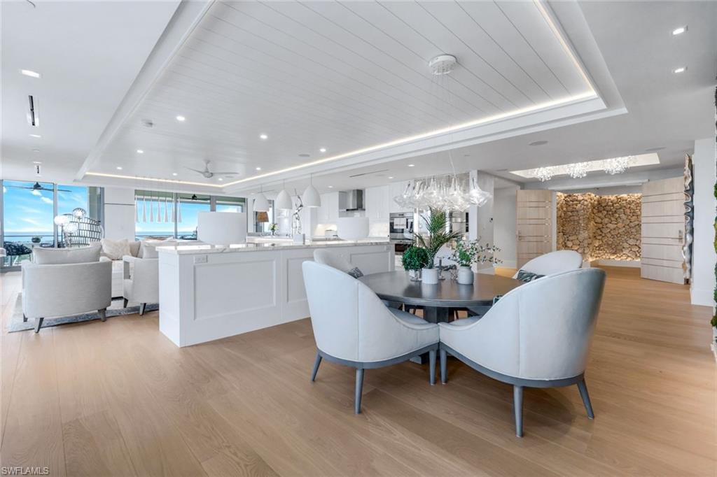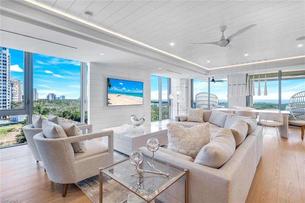 Live a lifestyle immersed in sweeping Gulf views that extend in every direction, showcased by floor-to-ceiling walls of glass enveloping this barely lived-in 6th-floor residence at Mystique—Pelican Bay’s newest luxury high-rise. This like-new residence, designed by MHK Architecture and Planning, with exquisite finishes by Build LLC, offers all the benefits of new construction without the wait. Natural light pours through every room, illuminating a gracious layout that flows seamlessly between the main living areas and the balcony, with unobstructed views. Masterfully finished, the residence pairs clean modern lines, timeless architectural details, and distinctive accents like a coral stone rock wall feature in the entry, and live moss-scaped dining room wall. Designed for both everyday comfort and stylish entertaining, the interiors feature well-proportioned living spaces and curated, high-end finishes. The kitchen is a showpiece, with custom cabinetry, premium appliances, a large island, and built-in banquette seating with a view. The primary suite offers a private sanctuary with a spa-like bath featuring a shower with Gulf views, an oversized soaking tub, and a custom-designed walk-in closet. A serene writing nook adds a personal touch. The spacious private office with custom built-ins provides versatility as a den or media room. Each guest suite includes an en-suite bath, including a charming bunk room designed to sleep six—ideal for visiting friends or family. Every space has been carefully planned to balance beauty and functionality, with timeless finishes and modern comforts. Life at Mystique offers exclusive access to Pelican Bay’s premier amenities. Enjoy a private stretch of beach complete with dedicated chair service and a resident-only beachfront restaurant. Mystique’s location places you just steps from Tram 6, making beach days effortless. Onsite, residents can unwind in the resort-style pool and spa, stay active in the cutting-edge fitness center with wellness-focused programs, or catch a film in the private theater. A 24/7 Front Desk/Concierge Service/Security with an impeccable staff who truly attends to every resident’s unique needs and two coveted upper-level parking spaces adds to an everyday lifestyle of convenience.