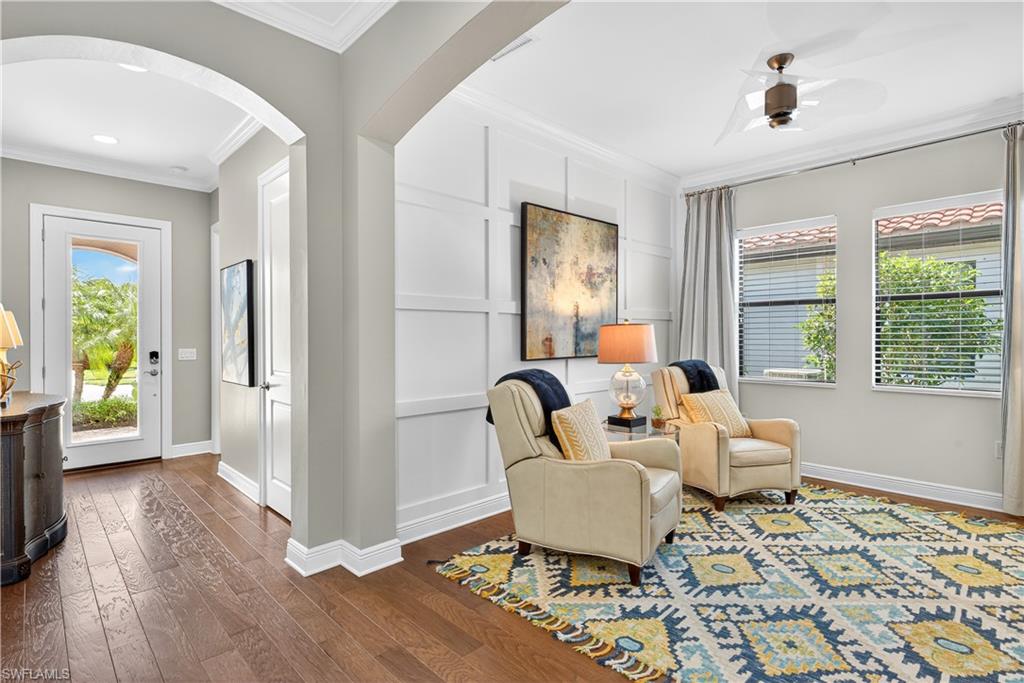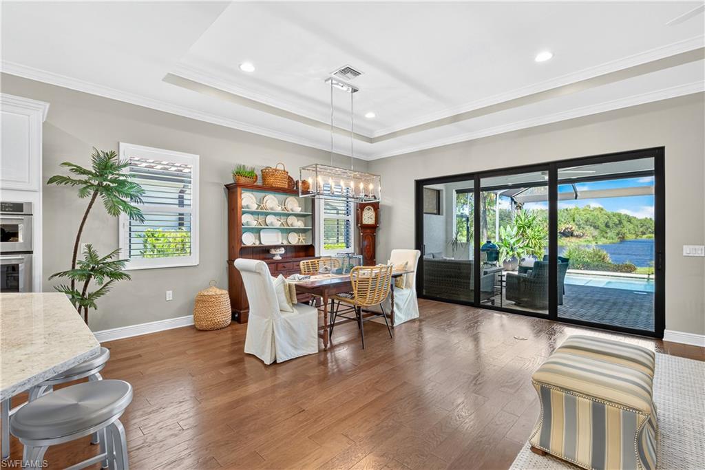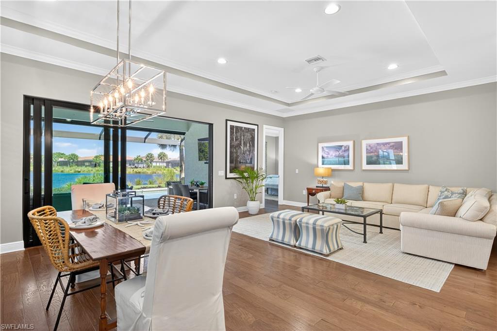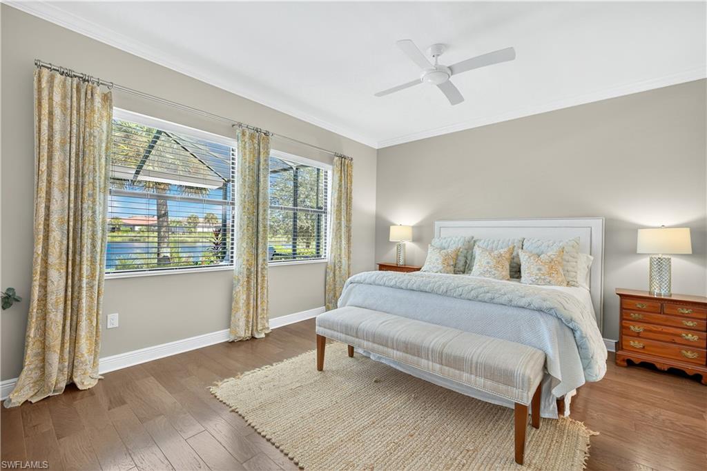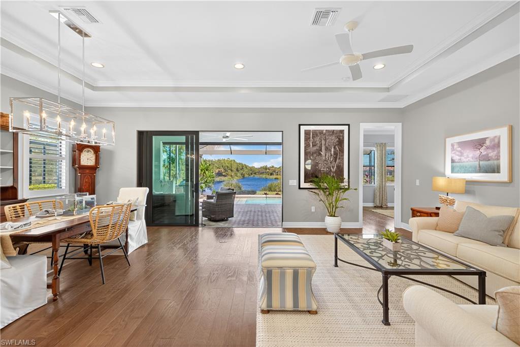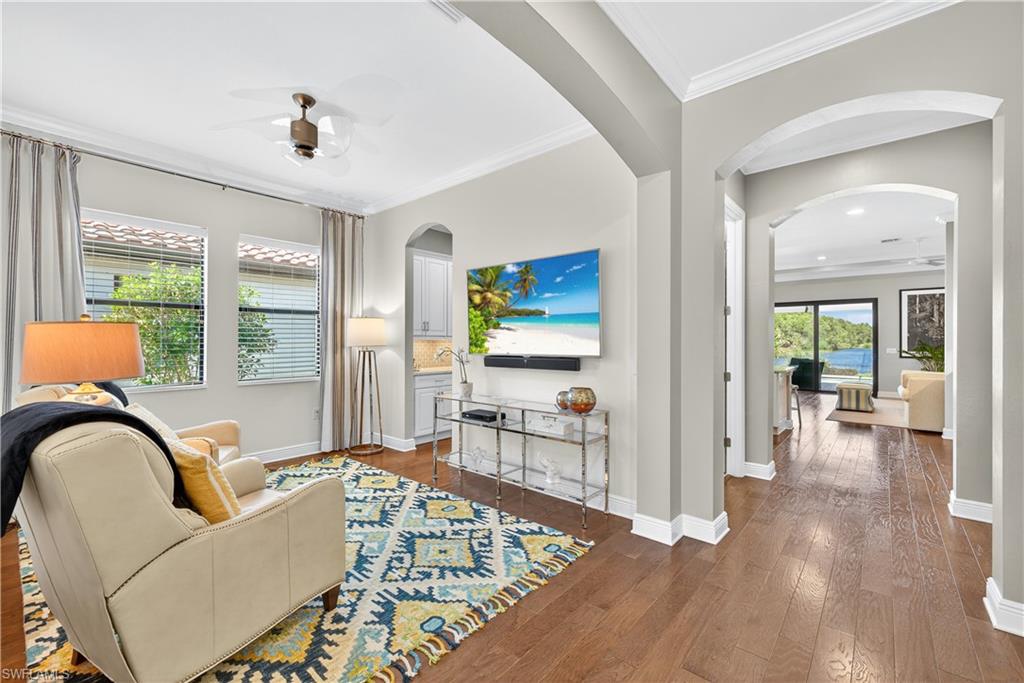 Experience the pinnacle of refined coastal living in this impeccably designed 2,420 sq. ft. WCI residence, where serene lake and preserve views greet you the moment you step through the door. Built with impact-resistant doors and windows, this 3-bedroom plus flex/dining room/den/study, 4-bath home blends timeless craftsmanship with modern sophistication. The expansive great room, framed by elegant tray ceilings and crown molding, is open to a designer kitchen curated for the discerning chef. Enjoy 42” premium cabinetry, stunning quartz countertops, an artfully tiled backsplash, and a large island accented by designer pendant lighting. A full suite of KitchenAid appliances — including a cooktop with exhaust hood — pairs beautifully with the Butler’s pantry, recessed lighting, and under-cabinet illumination to create a space that’s as functional as it is beautiful. Every detail reflects quality and intention — from the plantation shutters to the hardwood and ceramic flooring to the en-suites accompanying each bedroom. The primary suite embodies understated elegance, featuring a spa-like bath with a frameless glass walk-in shower, dual quartz vanity, and a custom walk-in closet with wood shelving — where each morning begins with breathtaking long lake and preserve views. Step outside to your private tropical sanctuary. A solar and electric heated pool with a lounging shelf takes center stage, surrounded by a panoramic screen enclosure and an elegant brick-paver deck overlooking the lake and preserve. The lanai is plumbed for an outdoor kitchen, offering the perfect foundation for more future entertaining fun. Every day here is pure magic — with breathtaking water views and the gentle sounds of nature as your backdrop. For peace of mind, a Storm Smart electric shutter provides both convenience and protection. Artesia is a gated community set beside the peaceful Rookery Preserve, ideally located between downtown Naples and Marco Island. You will live just minutes from world-class golf, dining, shopping, the Gulf of America, and the Paradise Coast’s pristine beaches. With no CDD and a low HOA that covers cable, high-speed internet, lawn care, and resort-style amenities, Artesia offers convenient, pet-friendly living. Discover the ultimate in luxury coastal living — where sophisticated design, serene surroundings, and flawless attention to detail come together in perfect harmony. The Florida lifestyle awaits you!