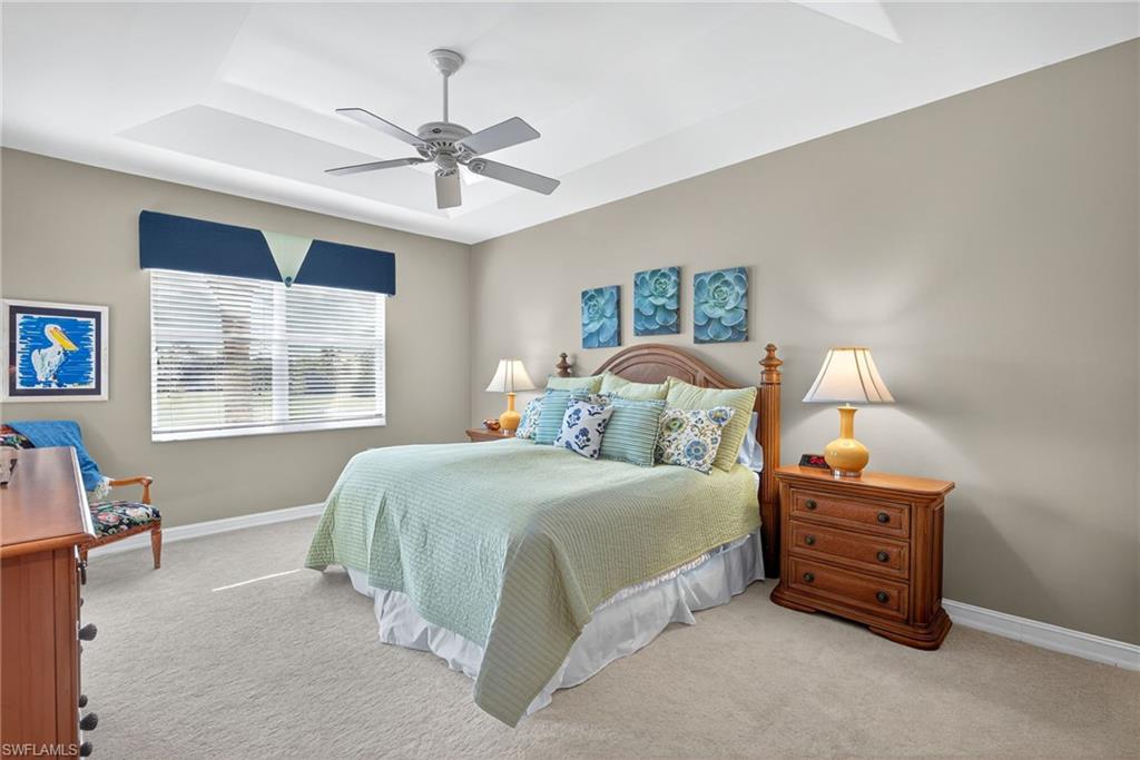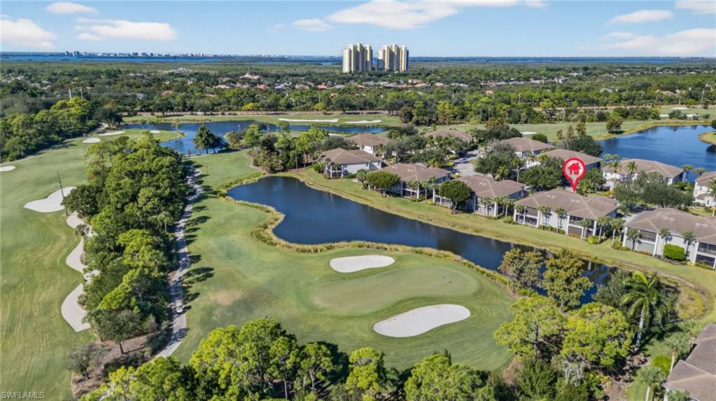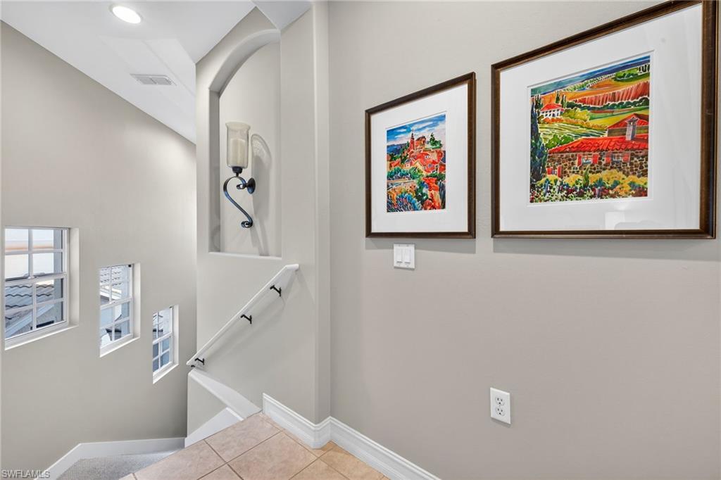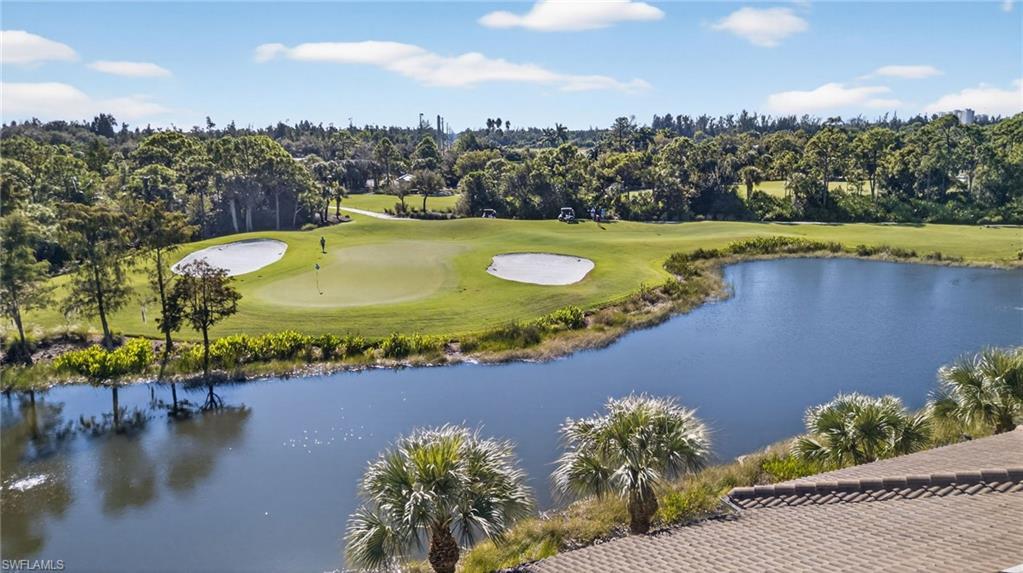 Located in the tranquil, quiet sought after neighborhood of Classic Court. Discover this spacious second-floor carriage home offering stunning southeast exposure with serene golf and lake views. The kitchen is a chef’s delight, featuring honed quartz countertops, KitchenAid stainless steel appliances, wood cabinets and a pantry with custom wood shelving. The primary suite boasts lanai access, a walk-in closet with an upgraded closet system, and a luxurious bath with dual sinks and a walk-in shower. Two guest bedrooms and an updated bath featuring new vanity, granite counter-top, decorative mirror and updated fixture. This guest suite has been thoughtfully positioned for privacy, complemented by a versatile den/office space. Enjoy outdoor living on the tiled wraparound lanai overlooking the 5th hole green of the Sound course, complete with 2024 hurricane screens for peace of mind. This home combines elegance, functionality, and breathtaking views—perfect for your Florida lifestyle! A/C and water heater 2024. If you are looking for an active lifestyle look no further: 27 holes of Championship golf, 14 pickleball, 8 tennis and 6 bocce courts. State of the art fitness center that is professionally staffed. Pelican Sound is nestled up to the Estero River with access to the Gulf. The community offers dry boat storage, kayaks, canoes and paddle boarding, along with a shuttle boat to Lovers Key State Beach Park. Minutes from RSW International airport and surrounded by fabulous shopping and restaurants. Start Living The Dream!