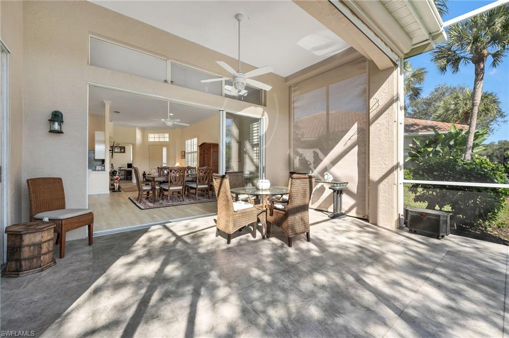 Welcome to Baycrest, a lovely and friendly community inside the gates of Pelican Landing. Now available is a 3/2 attached villa with golf course views from the extended lanai and master bedroom. This bright and airy corner unit is being offered fully furnished and ready for you to enjoy right away. Beautifully updated master bath with soaking tub, walk-in shower and gorgeous vanity and tile work. Additional features include Storm Smart shades on lanai, crown molding, new A/C in 2023, new roof in 2019 and spacious 2-car garage. Living in Baycrest provides you with the convenience of landscaping and irrigation maintenance, community pool with updated party room and baths, pest control and exterior painting. Pelican Landing is known for its unparalleled amenities, including a private 34-acre island for residents accessed via private water taxi, robust tennis and pickleball programs, fully equipped fitness center and miles of tree-lined walking paths. The Nest (optional membership) offers two 18-hole golf courses that wind through the neighborhood, exquisite dining and social activities.