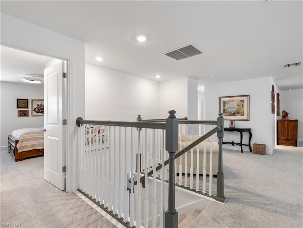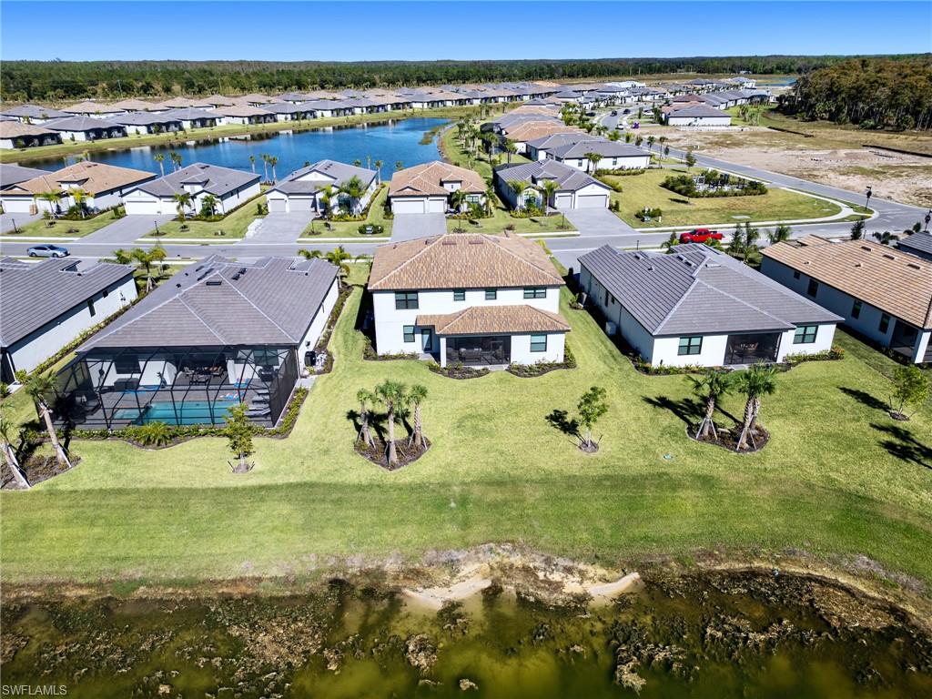 Brand new home in one of Estero's hottest selling communities... Verdana Village. Featuring 5 bedrooms plus a Loft area ~ 4.5 bath home that will impress you from the moment enter through the front door and is situated on a beautiful, Southwest facing Lake Lot. Entertaining? This gorgeous kitchen boasts beautiful white wooden cabinetry, quartz countertops, Gas stove and a large island drawing friends & family to gather in the great room, Neutral tones and extensive luxury plank tile flooring, the spacious living areas lead to split bedrooms ensuring privacy, perfect for a growing family or plenty of visiting guests. The spacious second story loft can be perfect for a home office, movie room, workout or school space for the kids. This premium lot features a lake setting with plenty of room for a custom pool as well as 2 huge driveways for ample parking. This less than 1 Year New home is awaiting your arrival and is in perfect condition without all of the extra builder fees, plus add'l conveniences already to go for you such as closet organizer systems in the primary suite and downstairs bedroom, added light fixtures, ceiling fans, window treatments and more! Verdana Village delivers true resort-style living with a clubhouse offering dining, a poolside bar, and a zero-entry pool with spa and cabanas. Residents also enjoy a fitness center, indoor and outdoor sports courts, playgrounds, dog parks, and year-round events hosted by a dedicated lifestyle director. Ideally located near shopping, dining, Southwest Florida International Airport, and the Gulf’s white-sand beaches, Verdana Village is the perfect blend of luxury and convenience.