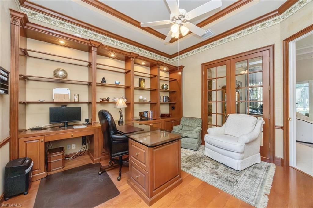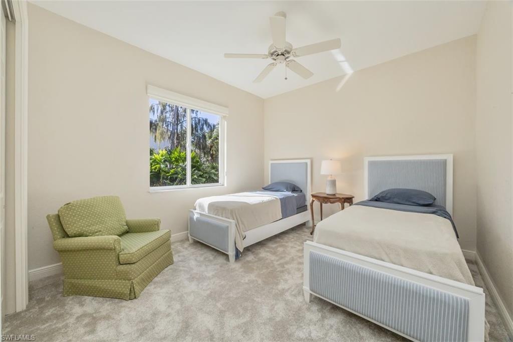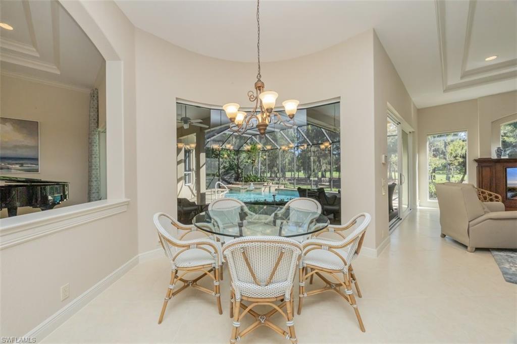 Discover the elegance of Quail Creek Estates! This stately single-story residence offers architectural appeal and beautifully landscaped grounds. Designed for both comfort and entertainment, the home features 4 bedrooms plus a den, 4 full baths, and a 3-car garage. The pool and spa overlook the 6th tee of the Creek Course, offering tranquil golf and landscape views! Light and bright with neutral finishes, the generous floor plan provides over 3,400 sq ft under air. Guest suites are thoughtfully separated from the primary suite for added privacy. The gourmet kitchen features a convection cooktop, new granite countertops and backsplash, stainless steel appliances, and an open flow to the breakfast area and family room. Recent interior updates include new flooring, fresh paint, upgraded window treatments, and refined finishes throughout. Significant enhancements elevate the property further, including an expansive pool cage with no-see-um screening, a whole-house generator with gas line and 1,000-gallon tank, a new pool heater and Jandy Aqualink system, two newer Trane A/C units, two new impact-rated sliders and a new front entry door, as well as upgraded garage doors with epoxy flooring. The landscaping is refreshed, and total improvements exceed $275,000 (see attached list). Quail Creek Country Club offers a premier lifestyle with two 18-hole Arthur Hills–designed golf courses, tennis, pickleball, bocce, croquet, a resort-style pool and spa, state-of-the-art fitness center, full-service spa, steam rooms, card rooms, and multiple dining venues with year-round social programming. Golf, sport, and social memberships are available but not required. Quail Creek Estates is known for its generous homesites, low HOA fees, roving 24-hour security, and desirable non-bundled status. Ideally located just 30 minutes from the airport or downtown Naples, this residence offers both privacy and convenient access to beaches, dining, and the best of Southwest Florida living!