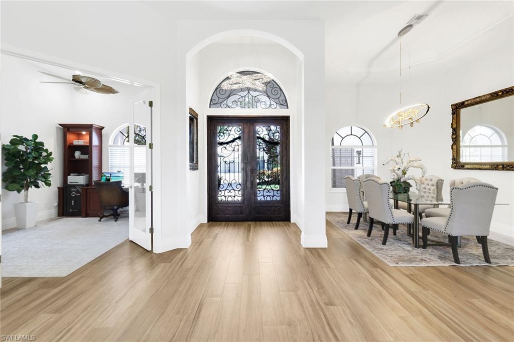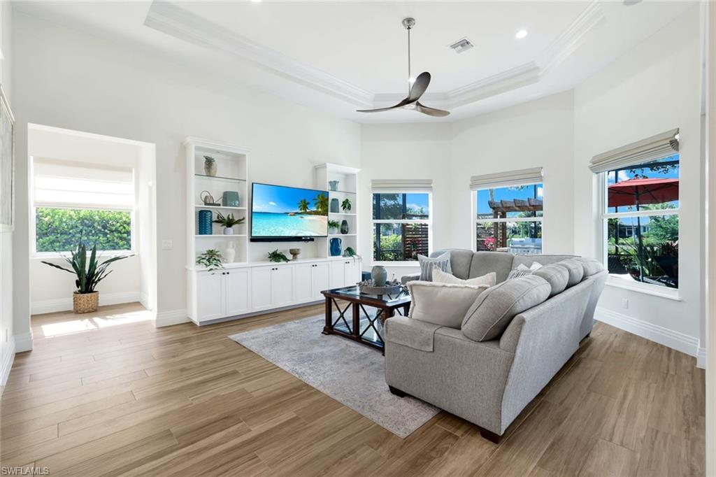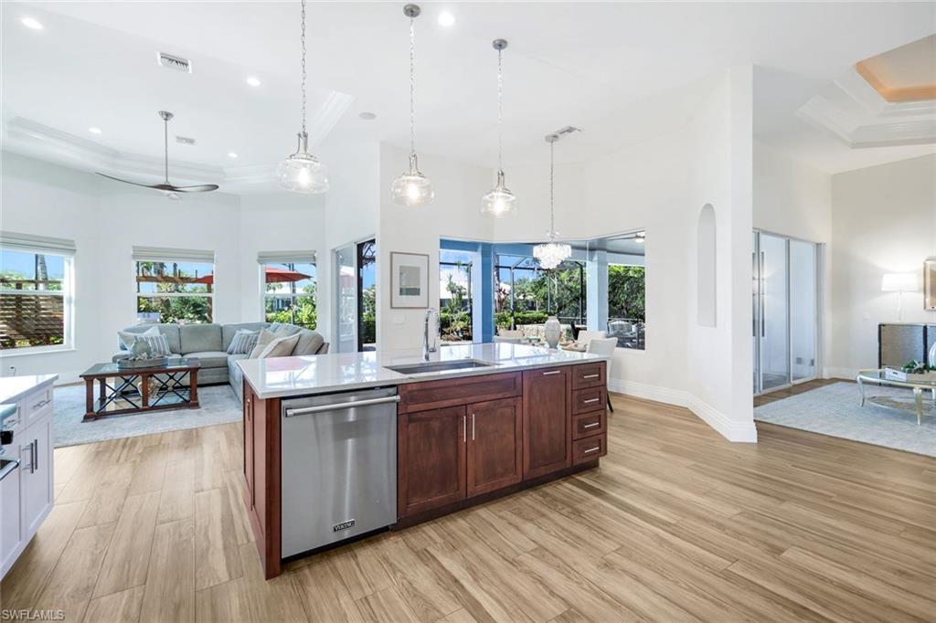 Mulberry Lane in Fiddler’s Creek, a lovely street with large shade trees, mature landscaping and loads of colorful flowers, just feels special, and this absolutely beautiful home wraps you in natural light, humming birds, and nature galore! Featuring a beautifully updated kitchen, family room, new flooring, and primary bath to swoon over, you don’t want to miss it! Oversized primary suite plus 2 additional guest rooms and den, 3 baths, formal dining room, living room, soaring ceilings, architectural detail everywhere, and gorgeous lanai with pool and spa starring spectacular sunsets every night. What’s not to love? Updates and features include: New roof, installed in 2018, whole home generator, 2 newer AC units, newer tankless water heater, new pool pump and heater, Viking appliances, impact windows at rear of home, plus easy to install kevlar panels for storm protection on lanai. Offered furnished and ready for you to move in and enjoy this spectacular home for the upcoming winter season! The Fiddler’s Creek Club and Spa, the heart of the community, is nearby featuring the updated 54,000 sq ft home to the state of the art gym with new equipment, yoga studio, pilates room, 2 resort pools with waterfalls and slides, 2 restaurants, spa services, fitness classes, full time activity staff providing special events and classes year round, tennis, pickle ball and bocce ball. Miles of sidewalks, all underground utilities, lush landscaping, location, modern coastal designed future building, plus the overall design of the community sets Fiddler’s Creek apart from all others and is a gem of south Naples. As if this wasn’t enough, there is also an optional beach and/or marina membership available, an extremely rare opportunity to enjoy the beach club at the Marco Beach Ocean Resort and the Marina on Isles of Capri. If you are a golfer, you are in the right place! The Golf Club at Fiddler’s Creek just re-opened with a total turf renovation, re-designed Arthur Hills greens, amazing practice facility anchored by the brand new spectacular private golf clubhouse. Equity memberships are currently available with no waiting list. Don’t miss seeing this special home, in this very special community!! Be sure to view the video attached to this listing, its gorgeous!