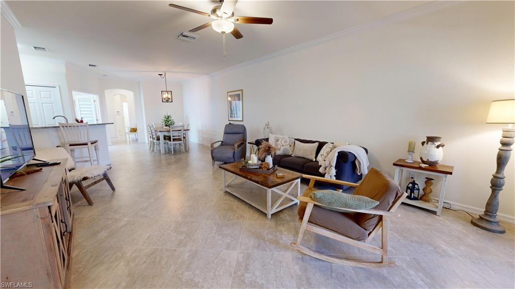 Orange Blossom Ranch, Beautifully Optioned “Orchid” Model Attached Villa, w/Extended Rear Lanai, on Nicely Situated Private Lot, Steps from Community Amenities, 1544 Sq.Ft. 1912 Total Sq.Ft., 2 Bedrooms, Plus Den, 2 Full Baths, 2 Car Garage. Options Include; Rear Extended/Enclosed Lanai (Added 03/2025), Hurricane Roll-Down and Accordion Shutters, all Openings (Added 06/2020), Tile on Diagonal Through Most, Wood Flooring in Bedrooms & Den, 42” Cabinets, Granite Tops, SS Appliances, Glass French Doors & Murphy Bed System at Den, Crown Molding, Privacy Wall, Walk-In Shower, Soaking Tub, and Dual Sinks at Master Bath, Large His & Hers Walk-In Closets, Quality Decorative Window Coverings, Ceiling Fans, and Light Fixtures, Epoxied Garage Floor. Property Complimented by State-of-the-Art Resort Style Amenities, Two Large Pools, Two Jacuzzi Tubs, Great Gym, Community Rm, Outdoor Bar & Dining Area(s), Tennis/Pickleball Courts, Bocce, Beach Volleyball Court, Jungle Gyms for the Kids, Something for Everyone. Development Adjacent/Short Drive to Public Schools, and a Brand-New Commercial Plaza Anchored by Publix Supermarket.