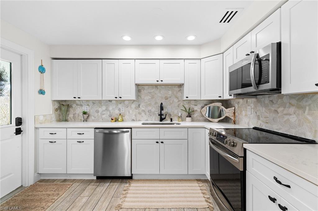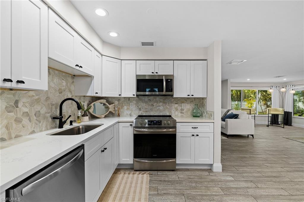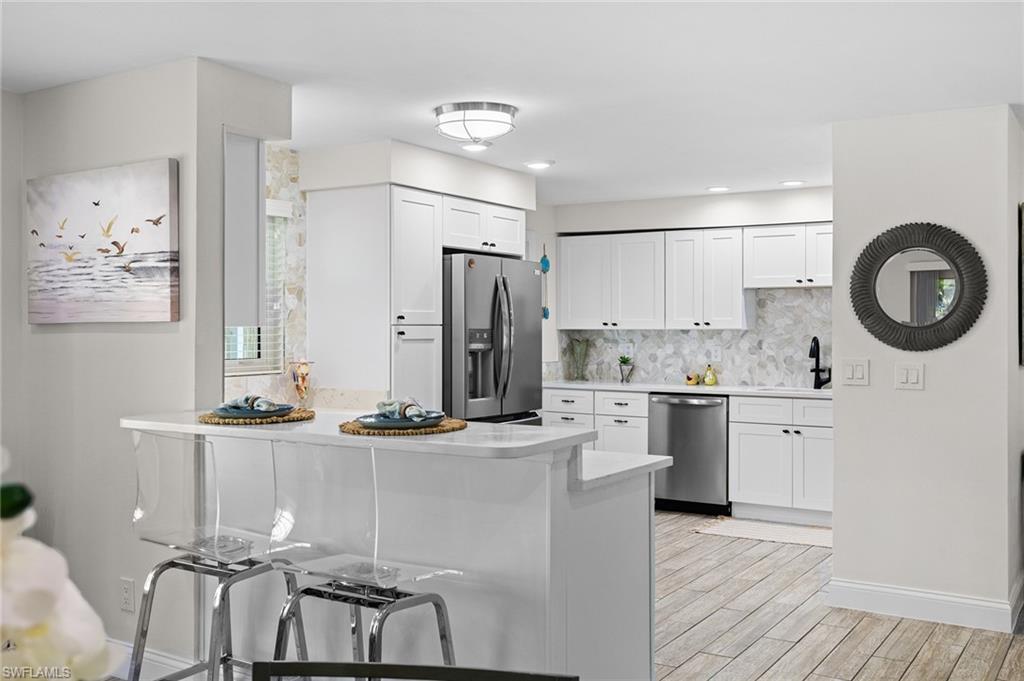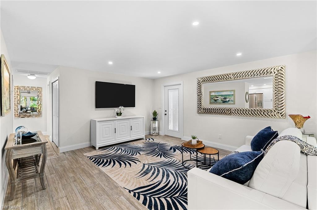 Discover a blend of single-family privacy and carefree condominium living in this stunningly renovated detached villa, move-in ready today! This light-filled two-bedroom, two-bath home (1,296 square feet under air) showcases beautiful coastal-contemporary finishes throughout, with no detail overlooked. Hurricane-impact windows and doors provide peace of mind, energy efficiency and quiet comfort year-round. The wow factor is the new full-width screened lanai featuring panorama screening, your private front-row seat to one of Naples enchanting backyards. A majestic mature Royal Poinciana bursts with fiery red-orange blooms against a wide, completely private vista with no rear neighbors, just lush tropical landscaping and serene preserve-like views. Southern-exposure sunlight floods the lanai and interiors all day long. Moments to 5th Avenue South, celebrated dining, shopping and Naples legendary white-sand beaches. Low quarterly fees, pet-friendly, 30-day rentals permitted (three times a year). Rarely does a villa this updated and private become available, so schedule your private showing before it’s gone.