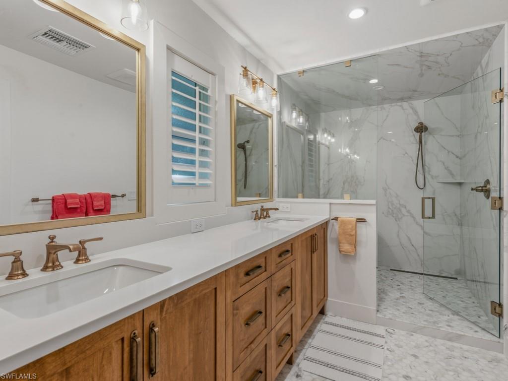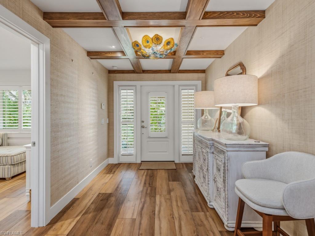 Completely reimagined and rebuilt, this very private 3 bedroom , 3 1/2 bath , 2 car garage coastal-contemporary residence lives like a brand-new home and offers the rare combination of modern luxury, full-home storm protection, and exceptional upgrades throughout. Every major system—roof, plumbing, electrical, windows, mechanicals, insulation, and structural components was replaced, providing peace of mind and long-term value just minutes from downtown Naples. A 1000 gal propane tank, tankless water heater , water filtration system, security system , ring cameras ,a fully fenced in back yard ,plus generator will complete your wishlist. Step inside to a warm, inviting interior enhanced by wide-plank flooring, designer fixtures, custom millwork, and a beautifully curated color palette. The chef’s kitchen features quartz countertops, custom cabinetry with glass accents, soft-beige tile work, floating shelves, and a gas range perfectly complemented by the home’s natural textures and refined finishes. The foyer and living room showcase custom ceiling beams, adding architectural interest that pairs seamlessly with the elegant lighting and craftsmanship throughout. The great room centers around the gas fireplace, accented with layered lighting and elevated materials. Updated bathrooms include contemporary tile selections, walk-in showers, modern vanities, and soft neutral tones that reflect the home’s cohesive design aesthetic. The outdoor living area has been fully renewed with a travertine outdoor deck, pool, spa ,pool bath , odor shower and lanai, offering generous space for dining, lounging, and enjoying the mature landscape, including beautifully established oak trees. The entryway & patio features chicago reclaimed brick that gives that unique first impression of the home. Spray-foam attic insulation and hurricane reinforcement further enhance efficiency, comfort, and long-term durability. The result is a residence that blends new-construction integrity with sophisticated design—modern, efficient, and finished with timeless style in a prime Naples location close to beaches, the Gordon River Greenway, Baker Park, shopping, dining and entertainment. A must see to appreciate this unique home.