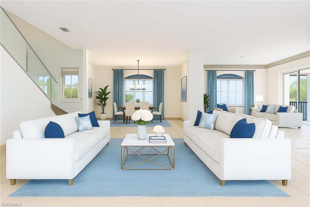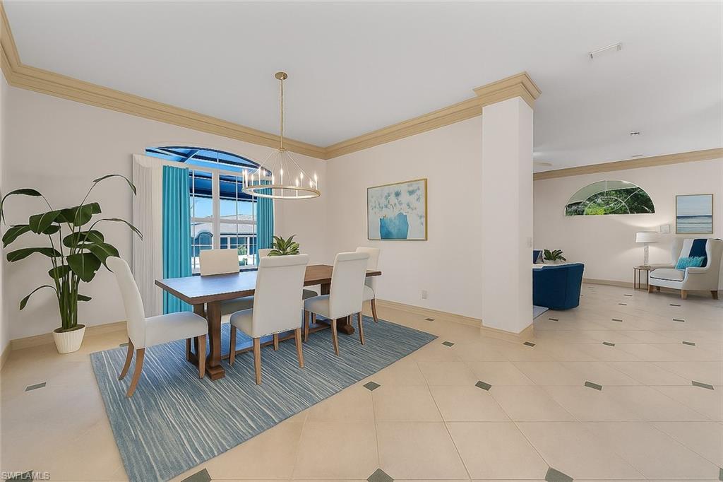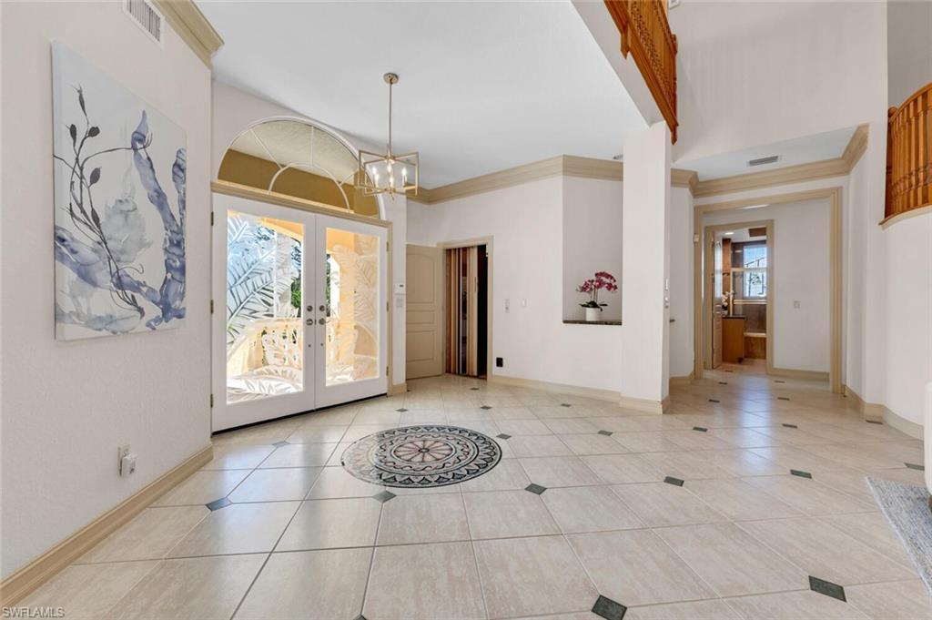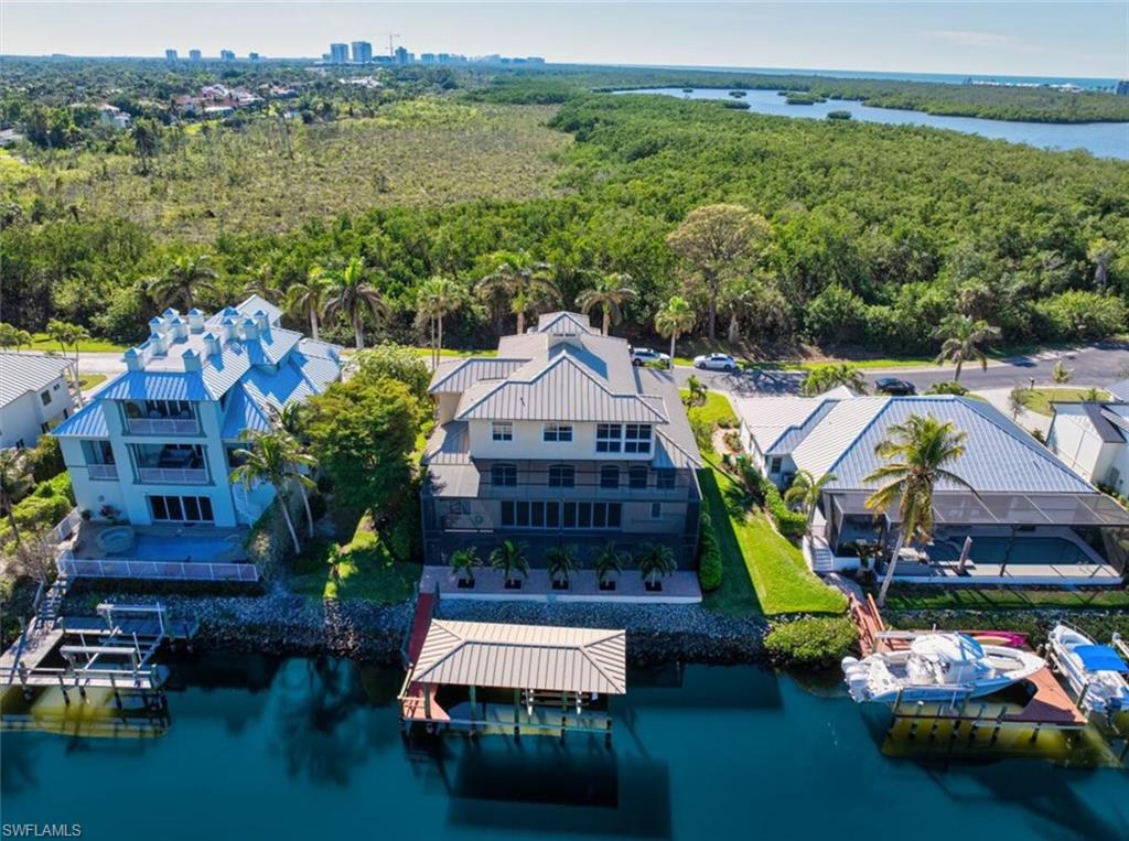 **Some rooms in this home have been now virtually staged and previously it was staged and those photos are listed as well, but the property is now vacant and easy to show.** Welcome to **Dolphin Cove**, a rare and exclusive **gated waterfront community** of only 12 residences, offering **direct Gulf access** just minutes from your back door. This exceptional 4-bedroom, 4-bathroom home features over **4,100 sq ft of living space** and is perfectly designed for both luxury living and effortless entertaining. Boating enthusiasts will appreciate the **private dock with 10,000 lb. lift**, **no-bridge access**, and fast, deep-water passage to the Gulf of Mexico—perfect for enjoying world-class beaches, pristine water, and the ultimate Southwest Florida boating lifestyle. This three-story coastal residence features an open floor plan, volume ceilings, hardwood and porcelain tile flooring, and elegant architectural details including arches and a sweeping staircase. The **third-floor primary suite** offers a private retreat with an en-suite bath, bidet, soaking tub, walk-in shower, and oversized custom closet. Enjoy peaceful mornings and sunsets from the screened private balcony. A den on this level also opens to a covered porch, with elevator access to all three floors. The **second floor** showcases a spacious kitchen with granite countertops, an island, and a walk-in pantry, along with 3 additional bedrooms and 2 full bathrooms, including one en-suite. The formal living room features vaulted ceilings and flows seamlessly into the dining room and family room, making the home ideal for gatherings. On the **first floor**, you'll find over **1,000 sq ft** of flexible space—perfect for a gym, entertainment area, hobby room, or guest space—along with a full bathroom. The lap pool and spa are enclosed in an impressive three-story screened lanai, accessible via the spiral staircase from the family room above. Additional features include a **whole-house generator**, **3-zone AC**, two garages, with space for 3-4 cars, plus workshop area, and abundant storage. Located minutes to the Gulf of Mexico, Mercato, top-rated schools, dining, shopping, and a short drive to RSW International Airport, this home offers the perfect balance of **luxury, convenience, and true coastal living**. Experience the best of Naples in Dolphin Cove—your private waterfront oasis with direct Gulf access and unmatched lifestyle amenities.