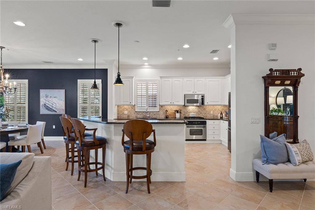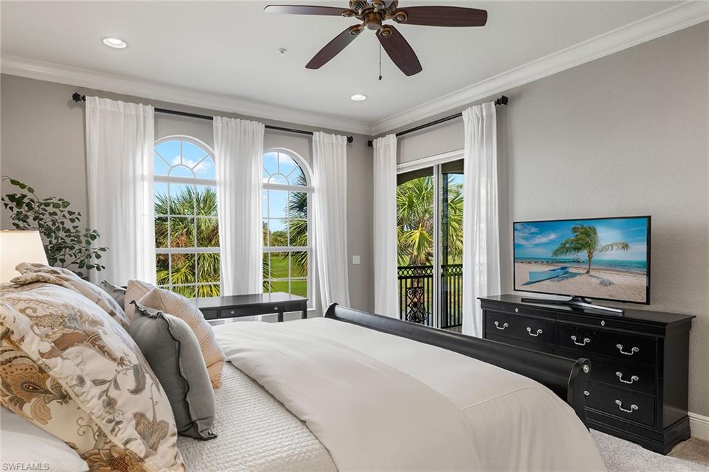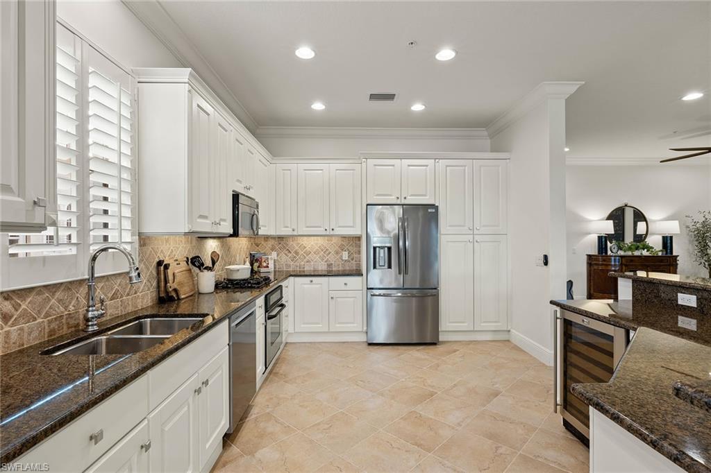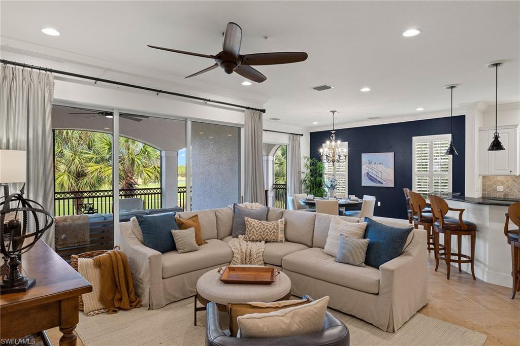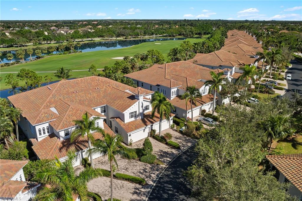 This coach home features breathtaking panoramic lake and golf course views of the 11th tee on the Rookery course. This elegant, turnkey-furnished residence, featuring a private elevator and elegant wooden staircase leading to three oversized bedrooms plus den or study, and a three-bath coach home in prestigious, double-gated community of Cascada at Fiddlers Creek. The open concept living areas feature crown molding, plantation shutters and tile flooring laid on the diagonal. Sliding glass doors lead to a spacious lanai with ideal views for relaxing outdoors. The gourmet kitchen is a chef's dream, with granite countertops, stainless steel appliances, a gas cooktop for precision cooking and a wine cooler. The primary suite offers stunning views, direct lanai, access, and a luxurious en suite with dual vanities, a soaking tub and a separate shower. Two guest bedrooms, each with a bath, provide comfort and privacy. The den offers flexibility as an office or additional guest space. Residents of Cascada enjoy a gated cul-de-sac, private pool and all tile roofs replaced in 2020, while the broader Fiddler's Creek community offers resort-style amenities including a fitness center, multiple pools, waterfalls and waterslides, tennis and pickleball courts, dining options, bocce and more. Beach and golf memberships are also available. With recent upgrades including a kitchen refresh, and new air-conditioning system and the CDD bond paid in full, this home combines luxury, privacy and convenience just minutes from Marco Island and downtown Naples. More than a home, it's a lifestyle.