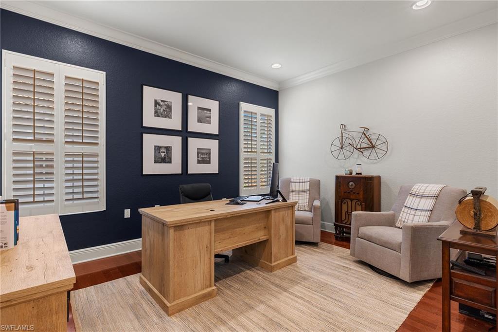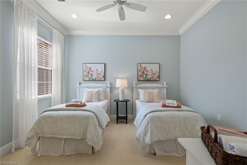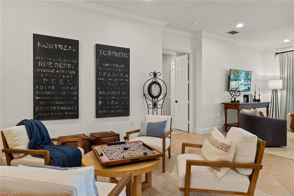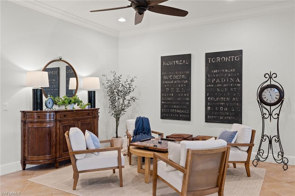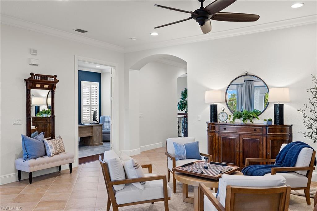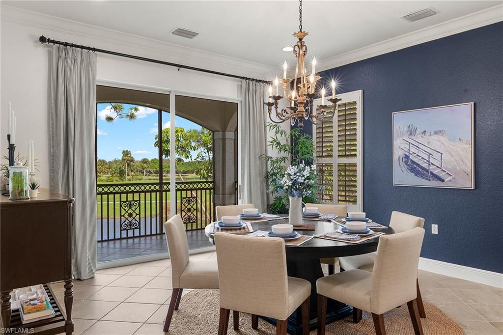 This coach home features breathtaking panoramic lake and golf course views of the 11th tee on the Rookery course. This elegant, turnkey-furnished residence, featuring a private elevator and elegant wooden staircase leading to three oversized bedrooms plus den or study, and a three-bath coach home in prestigious, double-gated community of Cascada at Fiddlers Creek. The open concept living areas feature crown molding, plantation shutters and tile flooring laid on the diagonal. Sliding glass doors lead to a spacious lanai with ideal views for relaxing outdoors. The gourmet kitchen is a chef's dream, with granite countertops, stainless steel appliances, a gas cooktop for precision cooking and a wine cooler. The primary suite offers stunning views, direct lanai, access, and a luxurious en suite with dual vanities, a soaking tub and a separate shower. Two guest bedrooms, each with a bath, provide comfort and privacy. The den offers flexibility as an office or additional guest space. Residents of Cascada enjoy a gated cul-de-sac, private pool and all tile roofs replaced in 2020, while the broader Fiddler's Creek community offers resort-style amenities including a fitness center, multiple pools, waterfalls and waterslides, tennis and pickleball courts, dining options, bocce and more. Beach and golf memberships are also available. With recent upgrades including a kitchen refresh, and new air-conditioning system and the CDD bond paid in full, this home combines luxury, privacy and convenience just minutes from Marco Island and downtown Naples. More than a home, it's a lifestyle.
