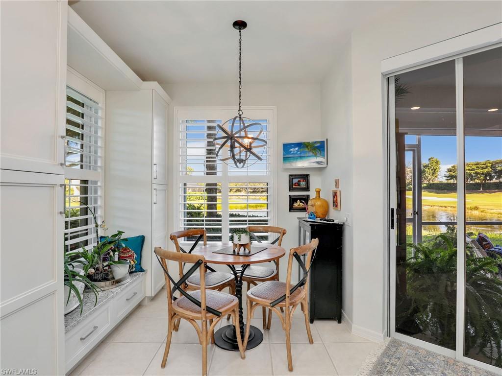 Beautiful Lake and Golf course view from this first floor unit that has been meticulously updated and ready for the next buyer! This home features 2 bedrooms + den, 2 bathrooms, and a one car attached garage. Everything from the bathrooms to the kitchen has been updated with granite countertops. The kitchen is spacious and thoughtfully designed, loaded with an abundance of cabinet storage. The lanai outdoor space has hurricane roll down shutters that are manual with the touch of a button along with sunscreen covers for more privacy that are also manual with the push of a button. Lake advantage of the new state of the art clubhouse that features indoor dining and outdoor bar and restaurant. This is one of the top-tier bundled golf community's you can join that also includes amenities such as bocce courts, tennis courts, exercise room, and beautiful clubhouse pool.