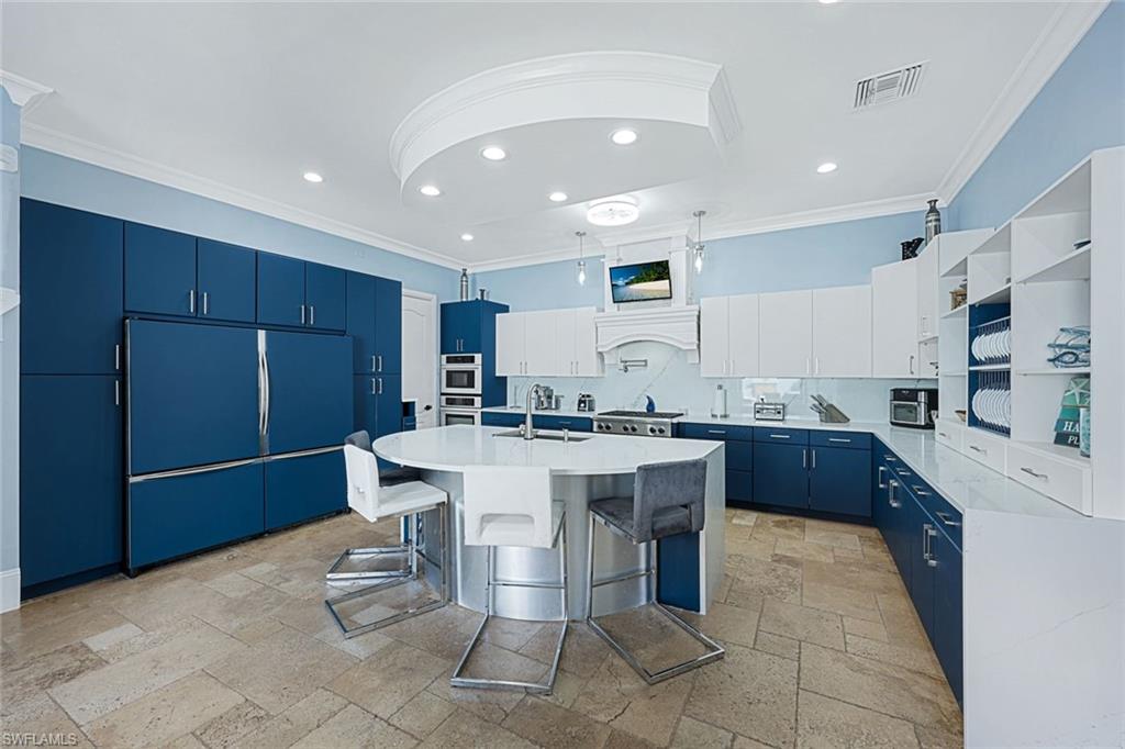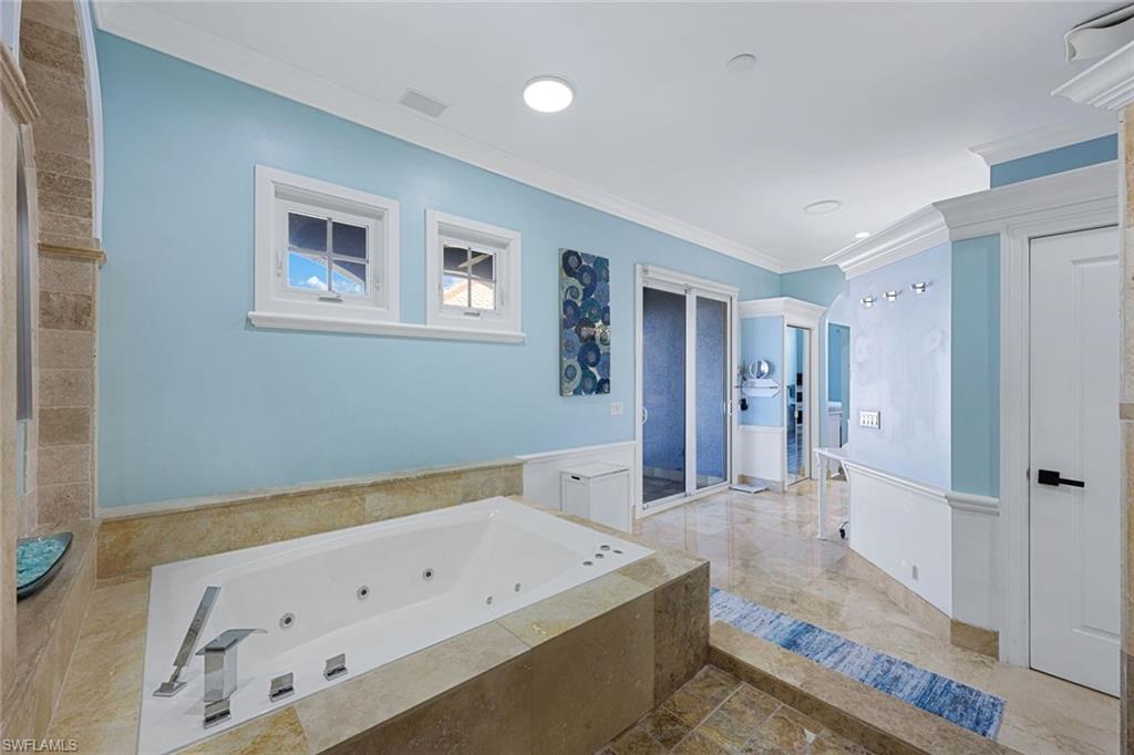 Stunning Coastal Retreat – Steps from the beach! This exquisite 5 bedroom, 6 bathroom residence offers the perfect blend of luxury and comfort, just a short stroll to the Delnor-Wiggins Pass State Park and Vanderbilt Beach. Designed for entertaining, this spacious open floor plan features a gourmet kitchen with 2 full size refrigerators and deluxe gas cooktop with serving drawer and pot filler. The butler’s pantry is a hidden extension of the kitchen with built-in icemaker. Relax in the great room with natural stone flooring and a seamless indoor-outdoor flow continuing to the private courtyard oasis with saltwater pool and spa, covered patio, outdoor shower, built-in grill with gas line and plenty of space for entertaining. Whether you’re hosting guests or enjoying peaceful coastal living, this home has it all. Great rental or investment opportunity with no HOA or rental restrictions and close to beach. The upper-level primary bedroom suite with soaring ceilings offers impressive large walk-in closets with an additional washer/dryer, a huge shower with jetted tub and 2 balconies to step out and enjoy the view. Separate cabana includes a kitchenette, full bath, murphy bed, and private patio perfect for multi-generational families. This home has all new fully impact windows and doors, all new pool equipment, fresh paint interior and exterior, all new lighting, remodeled kitchen, beautiful quartz countertops with waterfall edges, and updated flooring. New roof. Flood zone X, this property does not require flood insurance. Don’t miss this rare opportunity – schedule your showing today!