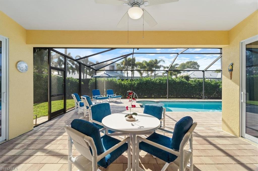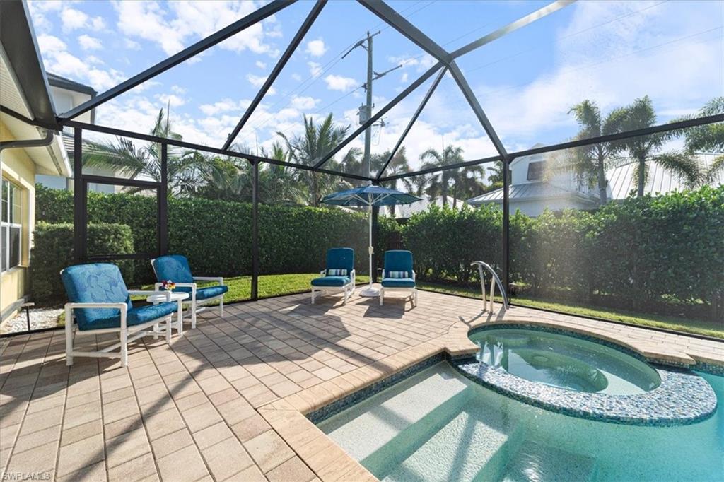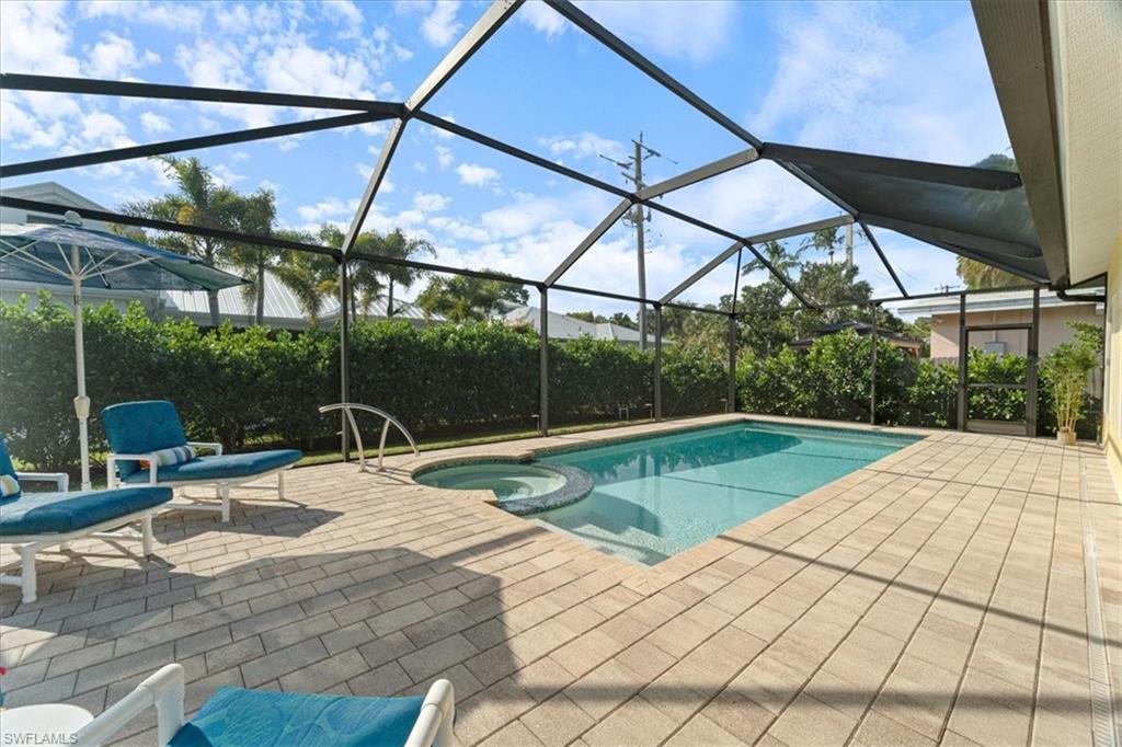 Location, Location, Location! Enjoy a dreamy coastal lifestyle in this charming beach bungalow. A short stroll or bike ride to the famous pristine white sand beaches of Naples, a mere mile from world renowned 5th Avenue South’s fabulous restaurants, entertainment & shopping; and just up the road from the new Four Seasons Resort and its exquisite amenities. This delightful home really is located exactly where you want to be. With volume ceilings and an abundance of natural light, this immaculate home has a flexible open floorplan perfect for entertaining friends and family. The split bedroom design ensures privacy for the owners and guests alike. The bright kitchen has quartz countertops; and the adjacent dining area & living room have pretty views to the inviting lanai, sparkling swimming pool & spa and tropical back yard. The mature landscaping and privacy hedge create a peaceful, private backyard oasis. Imagine wading in the warm tropical Gulf waters while watching the dolphins play during another dazzling sunset. All of this idyllic charm also comes with the assurance of knowing this home has never had hurricane damage or storm flooding. The Naples Community Hospital – named one of the top 50 Best Hospitals in 2025 is just a few blocks away.