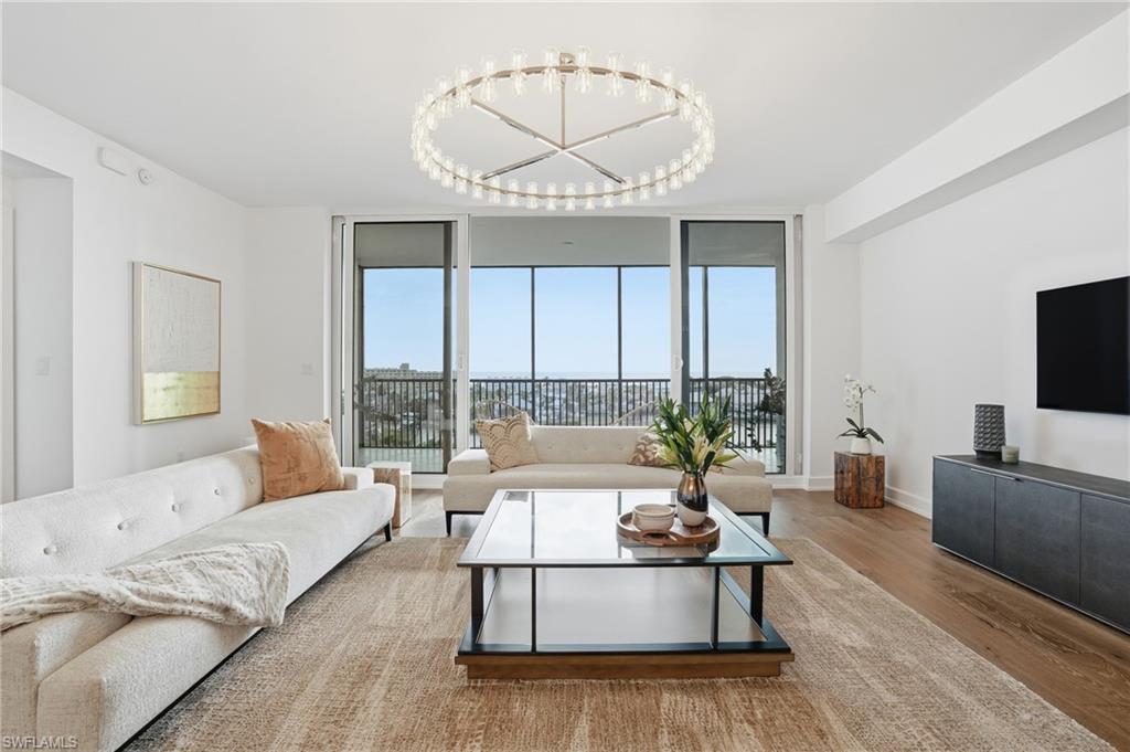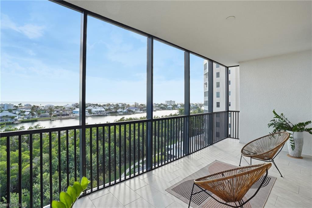 Luxury reaches new heights in this 7th-floor Grandview residence—London Bay’s crown jewel and the final, most coveted high-rise in the exclusive Waterside gated community. Perfectly positioned on the peaceful south end of Fort Myers Beach, this turnkey furnished 3-bed, 3-bath condo delivers a next-level living experience framed by sweeping views of the Gulf of Mexico and Estero Bay. Step from your private elevator directly into a world of curated elegance. An open, airy floor plan welcomes you with gleaming hardwood floors and custom designer lighting that together create a refined yet inviting ambiance. The gourmet kitchen is a showpiece of modern luxury, featuring sleek marble surfaces and Bosch appliances. A generous private balcony becomes your front-row seat to serene water vistas, while three beautifully appointed bedrooms—each with its own ensuite bath—offer exceptional privacy for family and guests. With 2,414 sq. ft. of meticulously crafted space, every inch has been intentionally designed to deliver comfort, beauty, and livability. Grandview’s amenities are truly world-class, thoughtfully curated to evoke the feeling of a year-round resort. Residents enjoy two luxuriously appointed guest suites, a vibrant club and social room with a catering kitchen and bar, and a resort-style heated pool with a private spa. Health and wellness are elevated with a state-of-the-art fitness center and dedicated yoga studio, while outdoor enthusiasts can take advantage of lighted pickleball and tennis courts, scenic walking and jogging paths surrounded by nature, and private, walkable beach access. Boaters will also appreciate the close proximity to multiple marinas. Whether enjoying sunset cocktails by the firepits, a morning workout, or a peaceful stroll along the water, life at Grandview truly feels like an extended vacation. Unit 705 at 4142 Bay Beach Lane is a private sanctuary where every detail has been intentionally elevated—an exceptional opportunity to claim your slice of paradise on Fort Myers Beach.