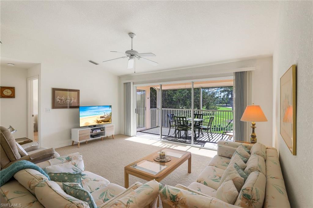 Welcome to this charming second-story condo offering beautiful, peaceful views of the golf course. This spacious 2-bedroom, 2-bathroom residence features an open and inviting layout enhanced by high ceilings that create an airy, light-filled living space. Ideally located just minutes from shopping, dining, and everyday conveniences, this home combines comfort, convenience, and exceptional value. The property has been thoughtfully updated to provide worry-free living. Recent improvements include a new water heater, new dishwasher, freshly painted kitchen and bathrooms, and brand-new vertical blinds installed in 2024. Additional updates include a new refrigerator in 2020, a new AC system in 2022, and lanai flooring upgraded in 2018, giving the outdoor space a clean, modern feel. For extra peace of mind, all polybutylene piping was replaced in 2024, a major improvement that enhances long-term reliability. The building itself received a new roof in 2015, further adding to the home’s durability and value. The screened lanai is the perfect place to unwind while overlooking the lush golf course—a serene backdrop for morning coffee, reading, or simply enjoying the Florida lifestyle. This home is ideal as a primary residence, seasonal retreat, or investment property. With its excellent location, thoughtful updates, and tranquil setting, this condo offers the perfect blend of comfort and convenience.