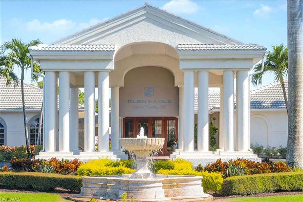 Enjoy refined living in this fully renovated end-unit residence located in Saratoga Colony at Glen Eagle Golf and Country Club. This ground-floor, three-bedroom, two-bath home offers 1,320 square feet of thoughtfully designed living space and includes a full golf membership. The reimagined kitchen features quartz countertops, a breakfast bar, a dry bar with added storage, ample counter space, and custom 42-inch upper cabinetry with dovetail drawer construction and soft-close hardware. All kitchen appliances are new. Baths are finished with herringbone subway tile, frameless glass shower enclosures, updated vanities, and upgraded fixtures. Additional highlights include tile flooring throughout, recessed lighting, new ceiling fans, fresh interior paint, and a new washer and dryer. A screened lanai provides a peaceful outdoor retreat, while the detached one-car garage adds everyday convenience. Set within a gated, pet-friendly golf community with resort-style amenities, this home is minutes from downtown Naples, fine dining, shopping, and Gulf beaches.